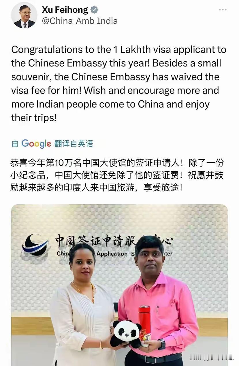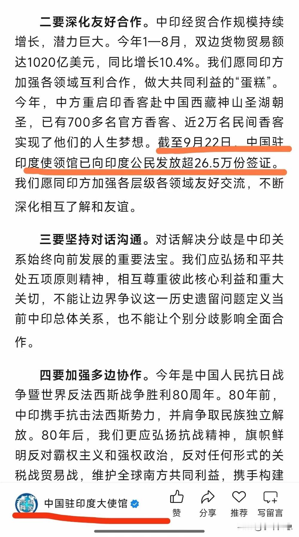 2025年4月9日,中国向印度人发放超8.5万个签证,9月22日,中国向印度人发