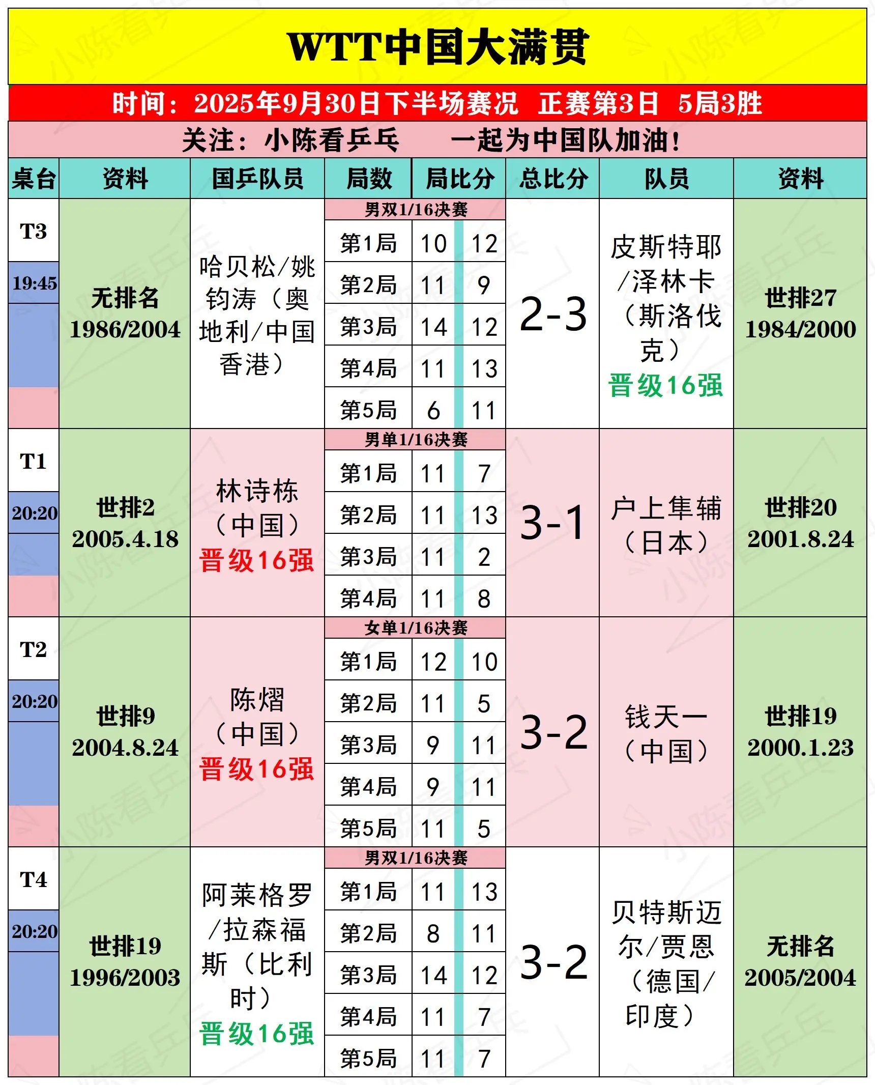 WTT中国大满贯#最新战报北京时间9月28日,刚刚结束一扬2025WTT中国