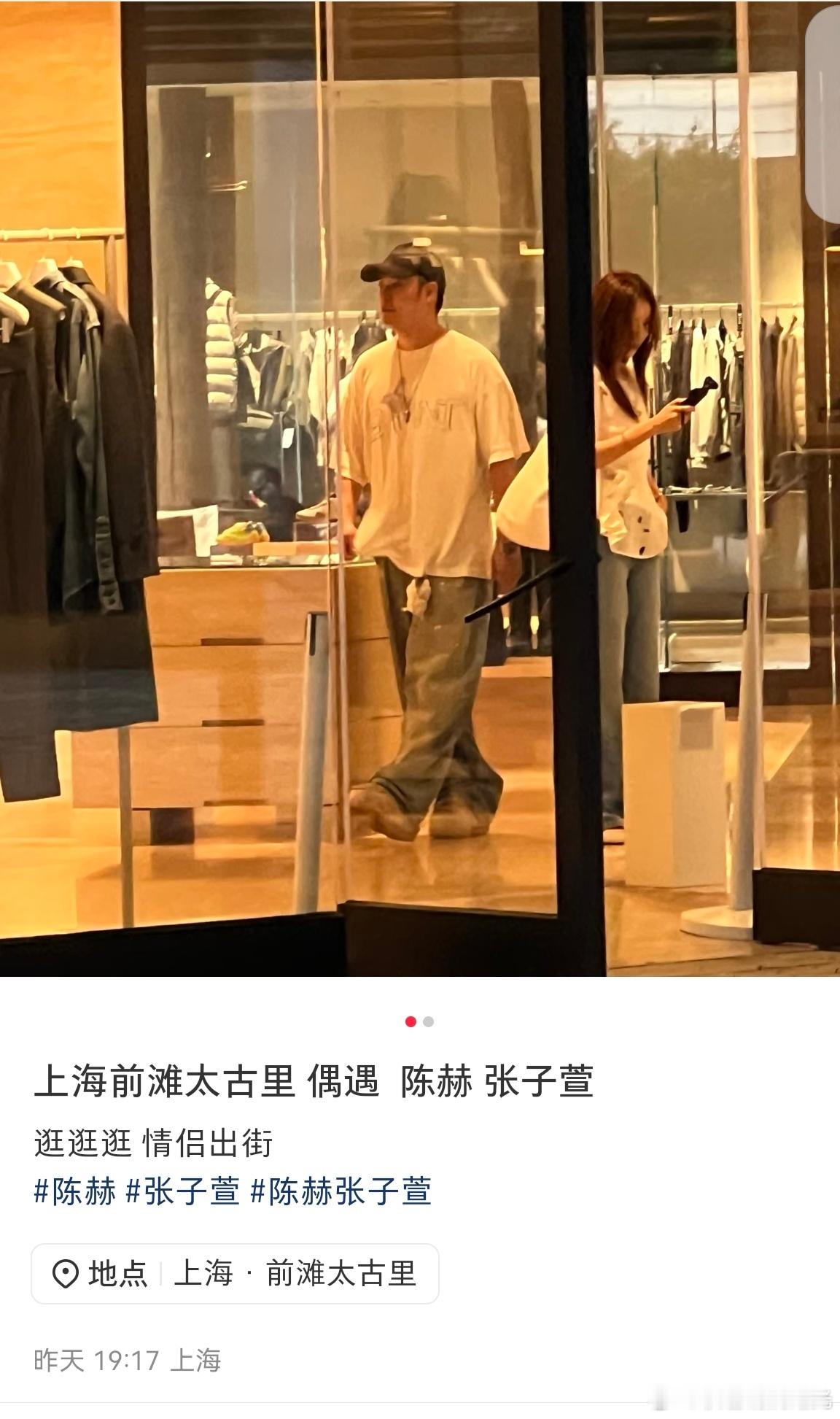 网友在上海某商场偶遇陈赫和张子萱,二人正在逛街,好甜