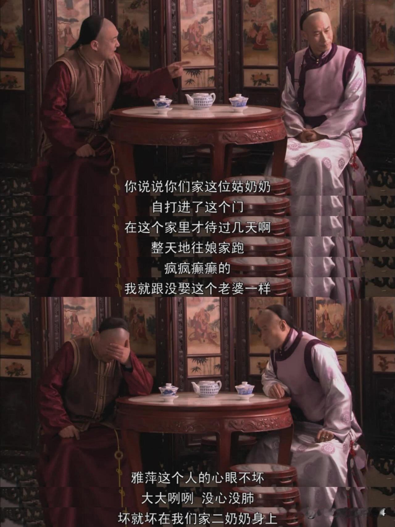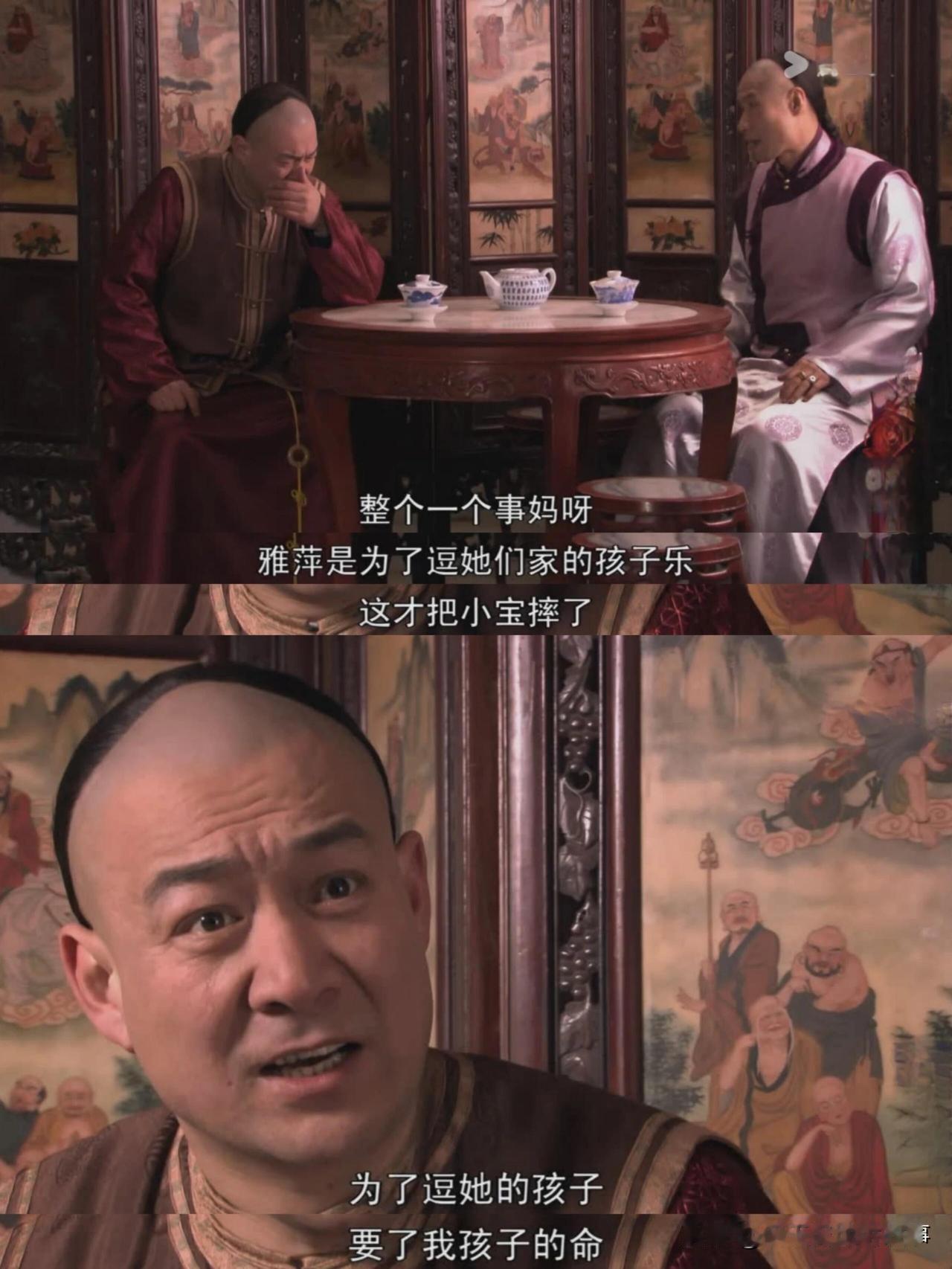 里看雅萍摔死儿子那段,真能让人心里堵得慌。这事说复杂也复杂,说简单,全是一环扣一环的荒唐和无奈。 本来二奶奶进门就提醒过她,别这么举着孩子玩,可雅萍没当回事,还想给景琦逗乐,越抛越起劲。偏巧这时候,三爷火急火燎闯了进来——他满脑子都是大房给三房垫钱的事,以为二奶奶在老爷子面前告了黑状,进门没顾上看,一脚就踹开了门。这突如其来的动静吓了雅萍一跳,手一滑,孩子就没接住。 要说这事赖不赖三爷?确实不好评。他不是故意的,可那一脚偏偏成了压垮骆驼的最后一根稻草,间接把雅萍推向了万劫不复的境地。更气人的是,事后三爷去告知关家,还添油加醋把责任赖到二奶奶身上,直接气的关家大爷要上门一命抵一命,把事情彻底闹大。 其实雅萍的悲剧,早有伏笔。她都嫁去关家了,还天天待在娘家,老公早就对她不满;白文氏、老爷子都提醒过她别乱抛孩子,她偏没心没肺不当回事。后来三爷又间接害了她第二次,引外人洗劫关家,让雅萍在那儿遭了轮番羞辱。 有人说她是自找的,这话不算错,可看着她一辈子活的稀里糊涂,没她妈命好,净摊上倒霉事,又觉得她惨。而且放到现在看,当年她抛举孩子的行为本身就很危险,小宝宝很容易因此得肠套叠,真不是闹着玩的。 评论区里还有人说“以前人都这么丢孩子”,这话你认同吗?要是你在现场,看到雅萍这么抛孩子,会像二奶奶一样上前提醒吗?