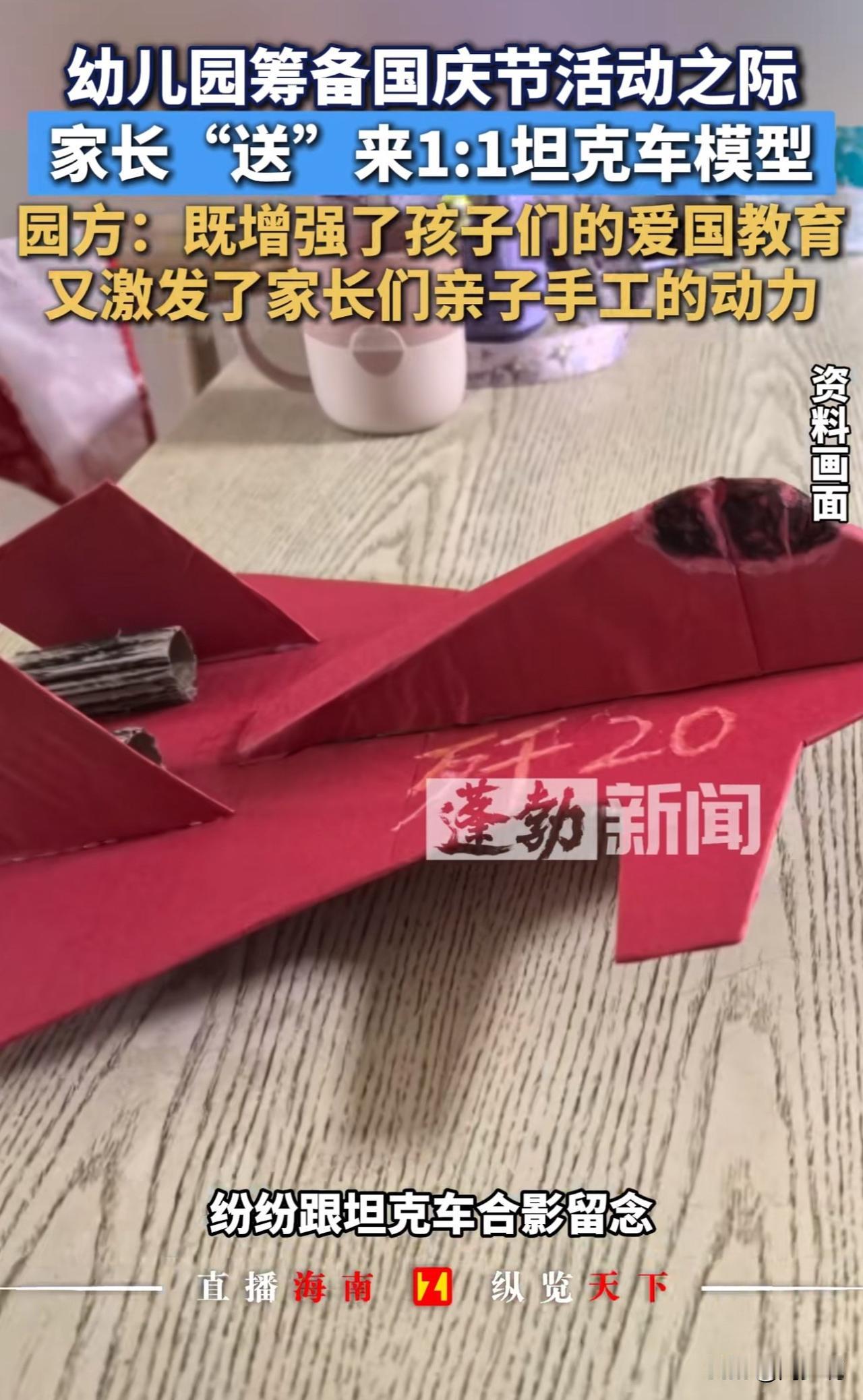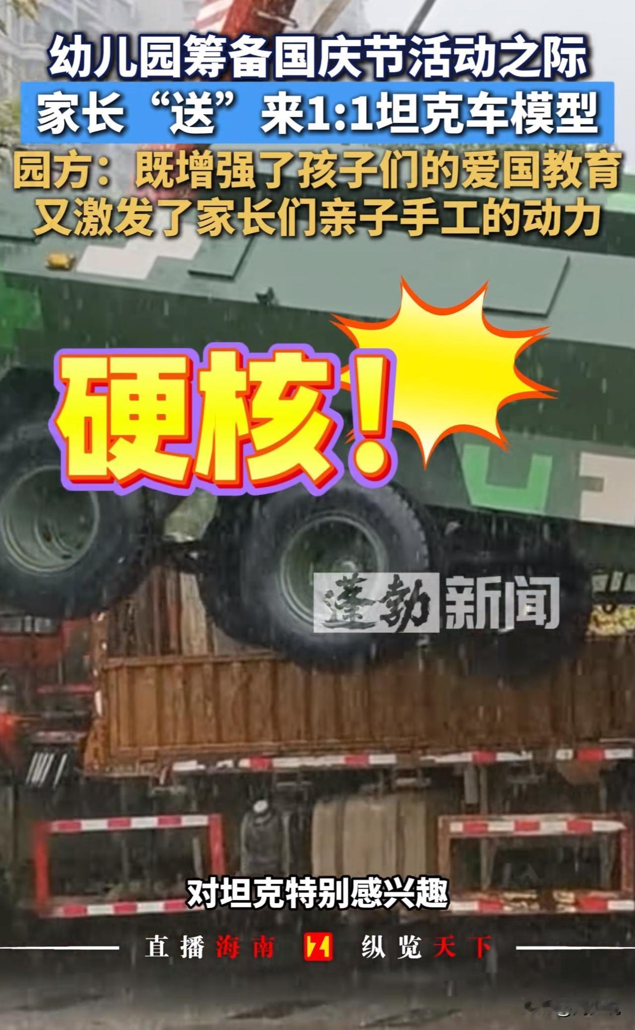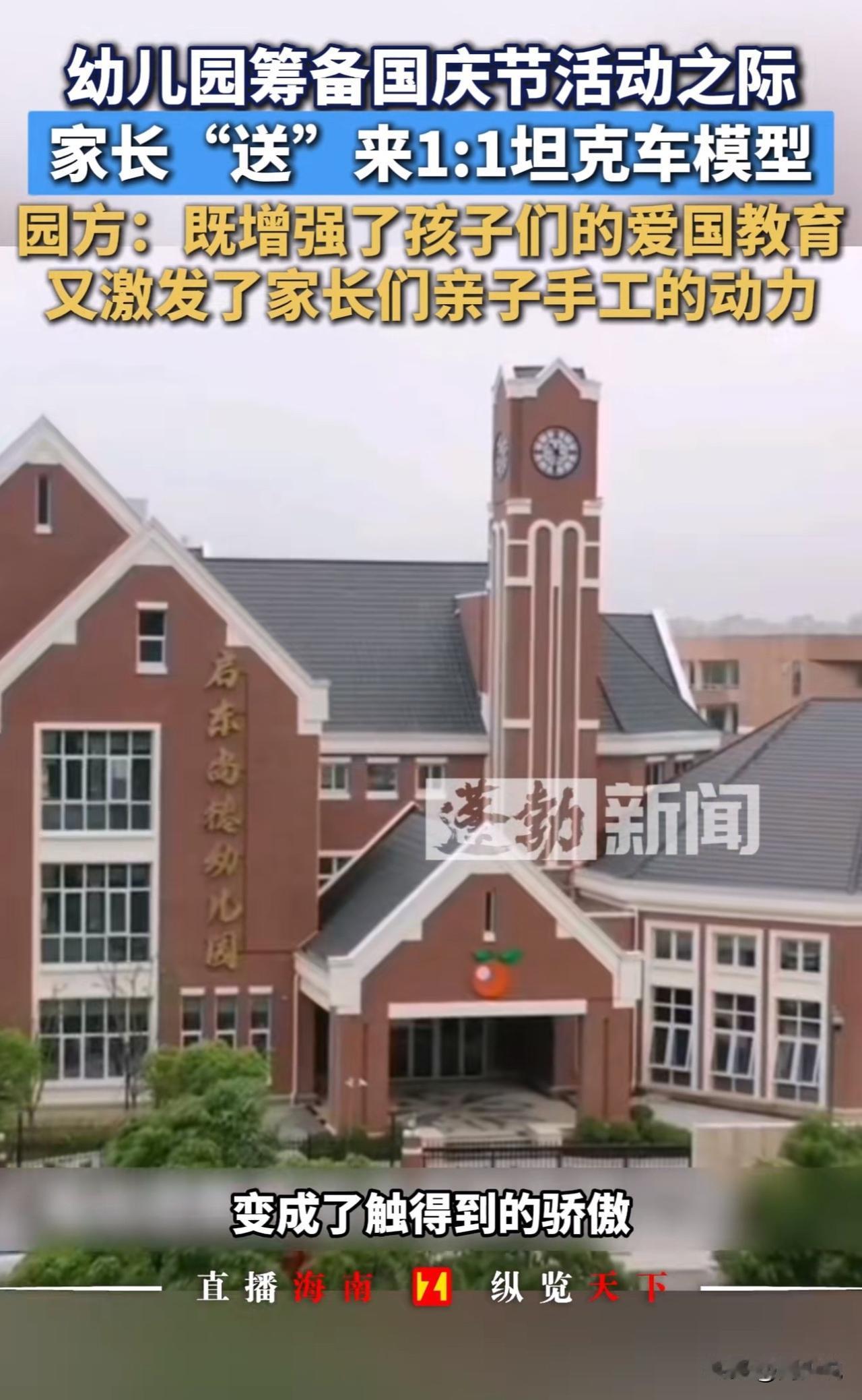 “真硬核!”近日江苏一幼儿园因一辆“坦克”走红,被网友戏称“最牛手工作业”。 原来,该园举办国庆活动时,一位开军旅研学营的家长,特意将1:1比例的战车模型借给幼儿园。 此前孩子们看九三阅兵视频后对武器兴趣浓厚,看到“坦克”后兴奋打卡、合影体验,毕业学子也专程赶来。园方称,“此举既圆了孩子心愿,也借此开展爱国主义教育,活动结束后模型已归还。” 此事情曝光后,网友热议:“这家长太硬核!”“沉浸式爱国教育太有意义”! 也有网友调侃,“这下家长群彻底卷起来了”。 看完这事儿,周少觉得这位家长的做法,其实是给教育者上了生动一课。 比起课本上的图片和视频,这种看得见、摸得着的实物体验,更能点燃孩子的兴趣。孩子们围着“坦克”探索的样子,正是好奇心和求知欲被激发的表现,这种沉浸式感受带来的爱国情怀,也比空洞说教更有感染力。 说到底,教育不该局限于课堂,生活中的点滴都能成为教材。关键是家长和老师要多留心孩子的兴趣点,用他们能接受的方式传递知识和价值观。 这样的“硬核”教育方式,你觉得值得推广吗?如果是你,会用什么特别的方式给孩子做启蒙?#长沙新朋友# #寻美三湘#