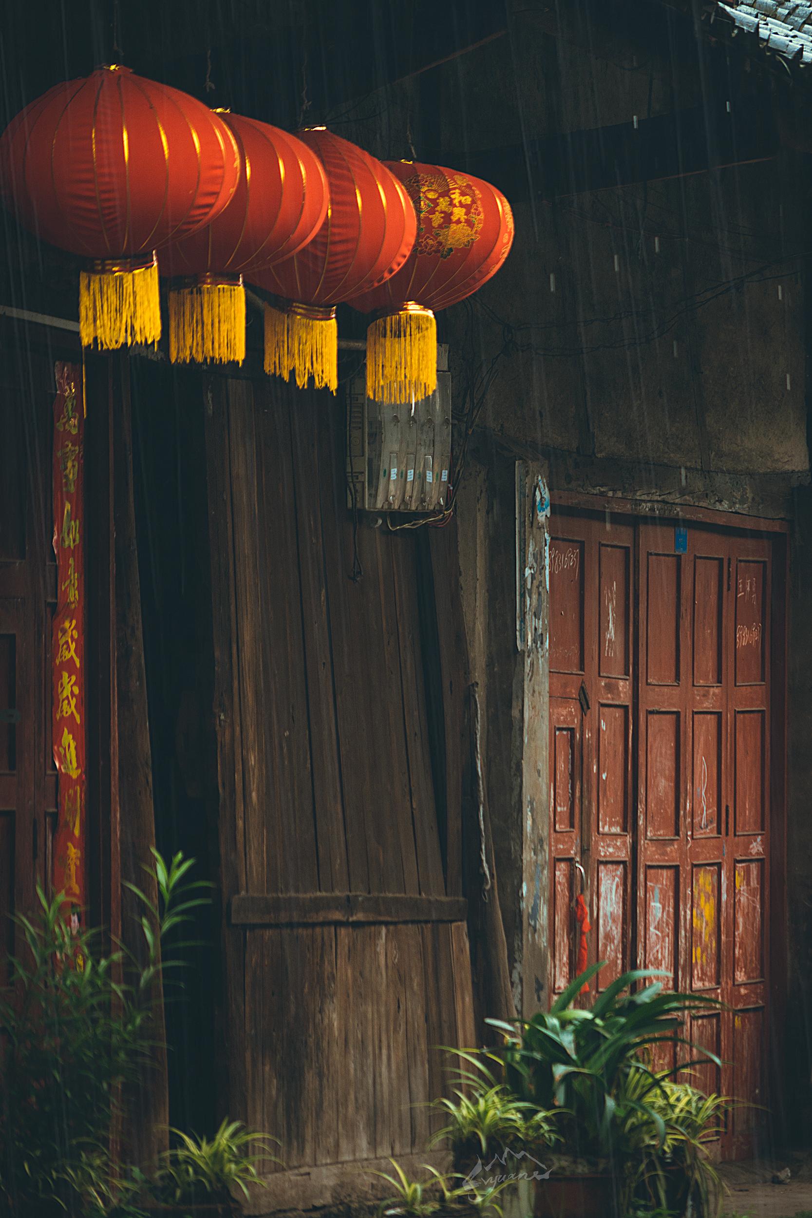 沿着石板路,两边古朴房屋临街而立,尽显川东穿斗建筑魅力。穿斗式木构架,柱枋相连,稳固又灵活。土黄色泥墙有点斑驳,却更添古朴韵味。木质门窗雕花虽有些模糊,仍能看出工匠精湛手艺。窗棂上红灯笼随风轻摇,给