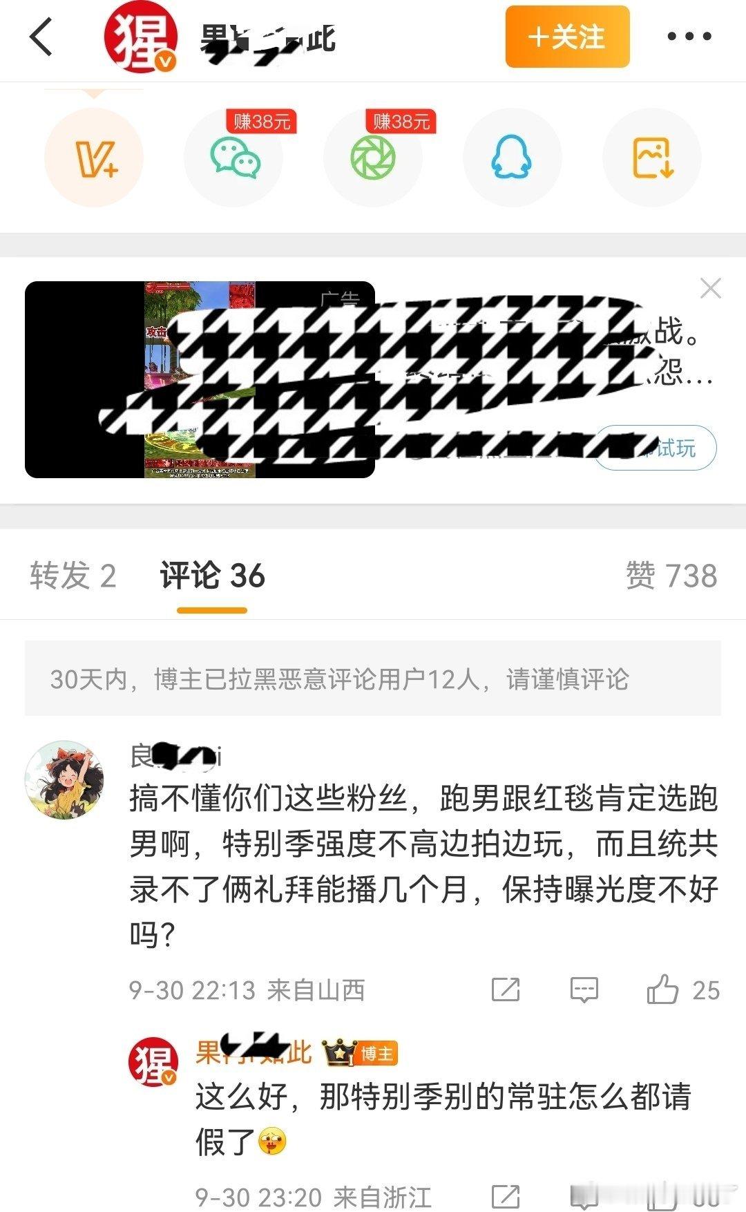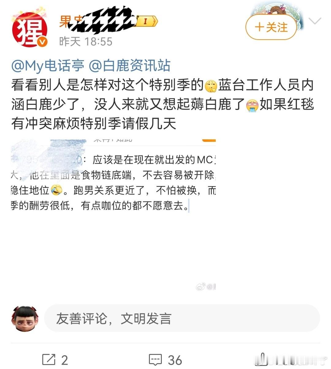 蓝台工作人员爆料跑男特别季有点咖位的都不愿意去,特别季其他常驻嘉宾都请假了,而她