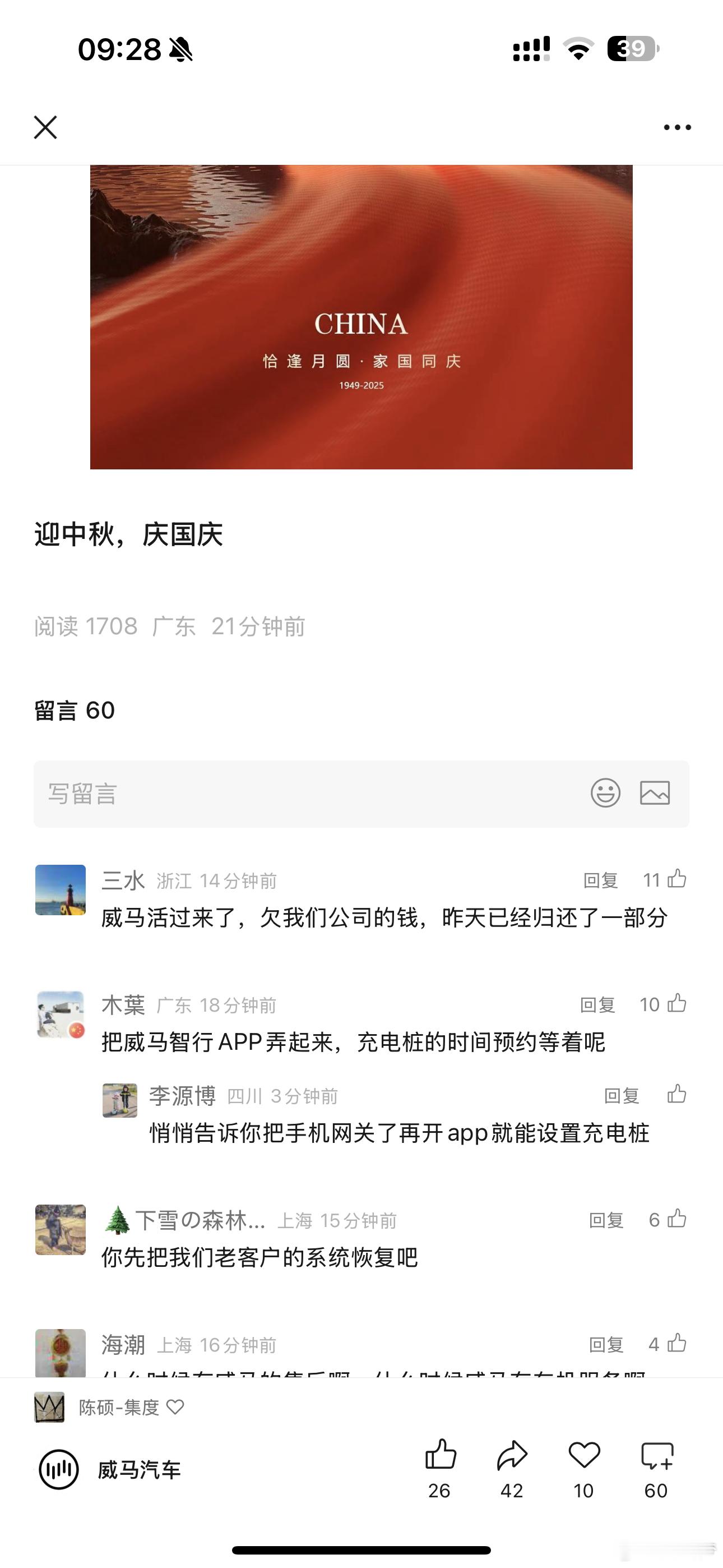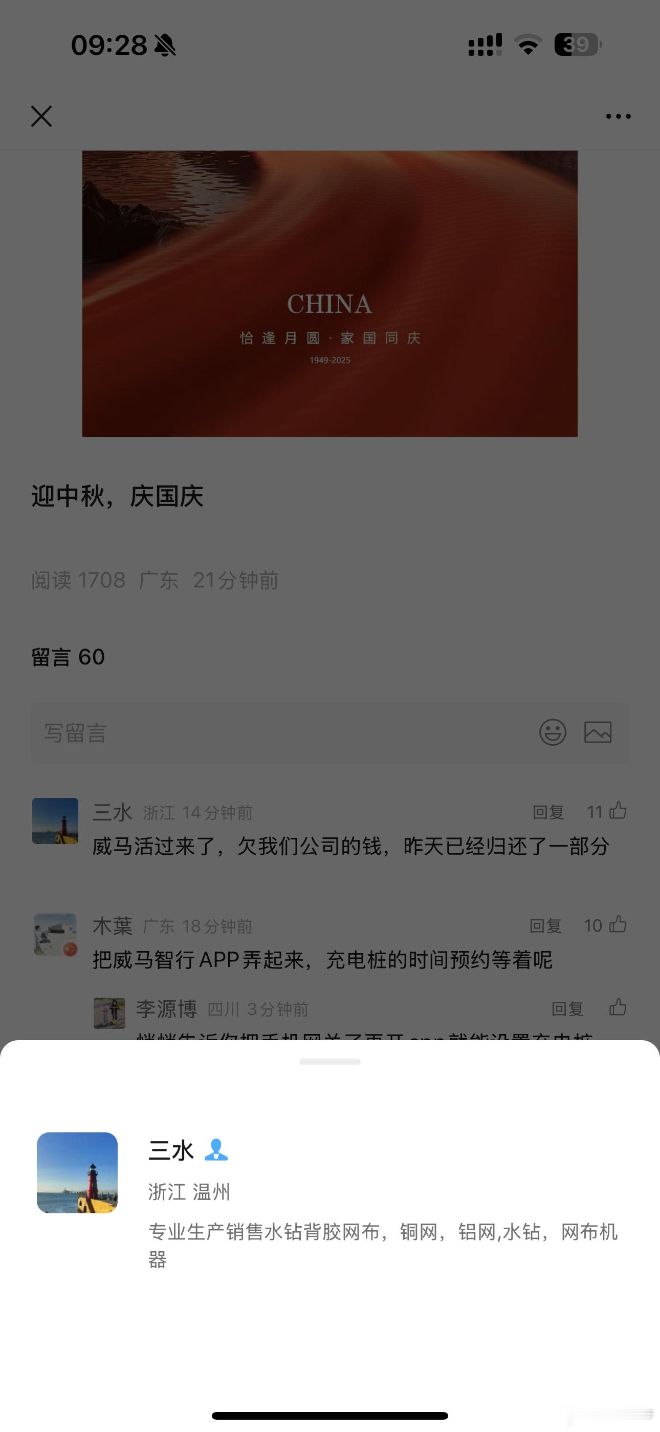 这次又发文了,有意思的是下方有供应商(应该是)回复已经收到部分欠款了