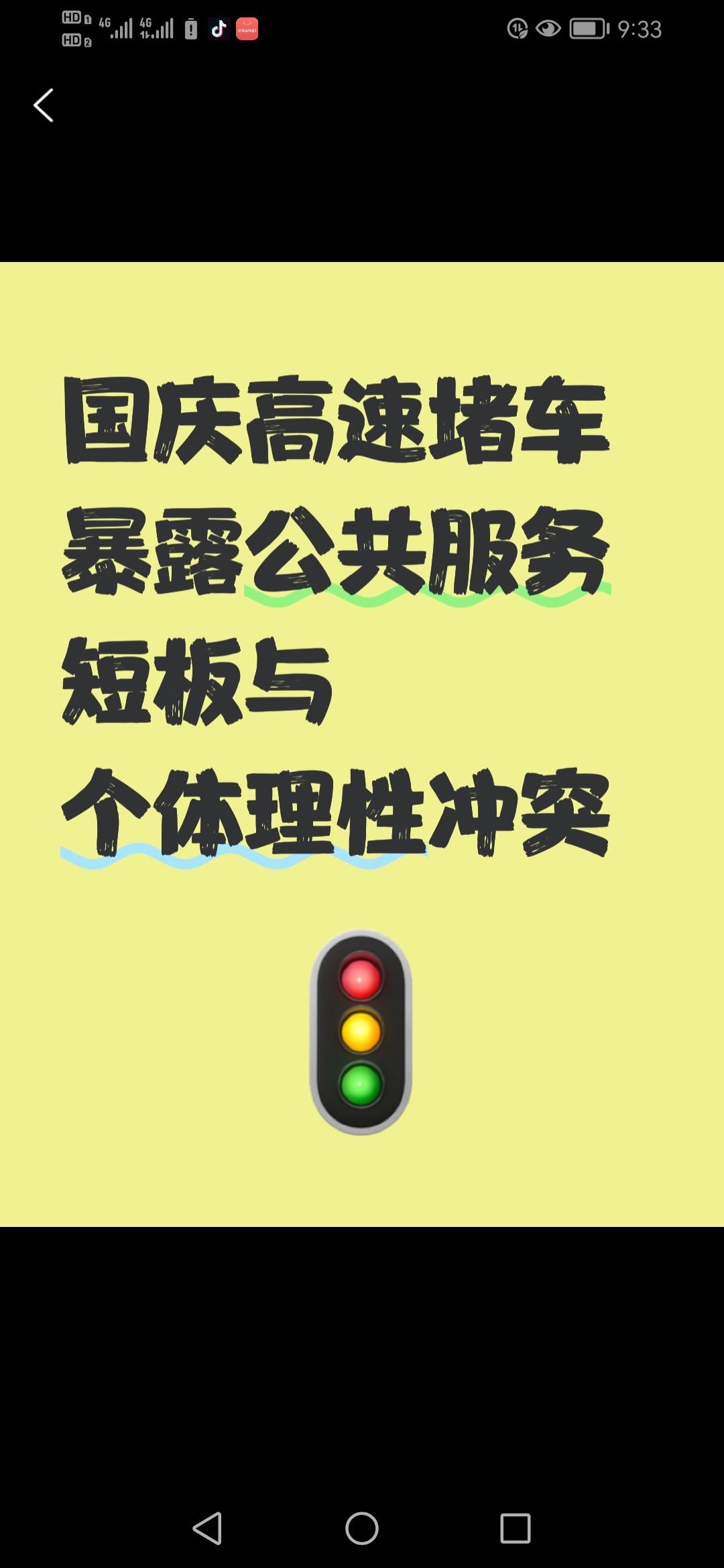 国庆长假前夕,高速公路惊现“鸳鸯锅”现象,红白车灯分割道路,这究竟是“聪明人”的无奈选择,还是公共服务暴露出的短板? 9月30日,京港澳、四川等地的高速公路上,红白车灯交织,将道路分割成鲜明的两半,形成了一道独特的风景线。然而,这道风景线背后,却是车主们的无奈与焦虑。据统计,有车主在180公里的路程上开了整整5小时,甚至有人不得不在中途找酒店住宿。这一现象不仅表明了“错峰出行”策略的失败,更揭示了信息时代下个体理性与集体非理性之间的复杂博弈。凌晨4点,原本应空旷的高速公路上车流量骤增320%,导航算法的趋同让众多车主不约而同地选择了同一路线。但在这场混乱中,也不乏人性的温暖。四川高速上,一位孩子突发高烧,周围车主自发让出应急通道,展现了人与人之间的关爱与互助。然而,公共服务的不足也在这场堵车“盛宴”中暴露无遗,面对庞大的车流,相关部门的应对显得力不从心。 这场看似混乱的堵车,实则是一场关于责任与尊严的公共考验。它让我们思考,在信息时代,如何平衡个体理性与集体非理性,以及公共服务如何更好地应对挑战。欢迎大家在评论区留下你的看法!
