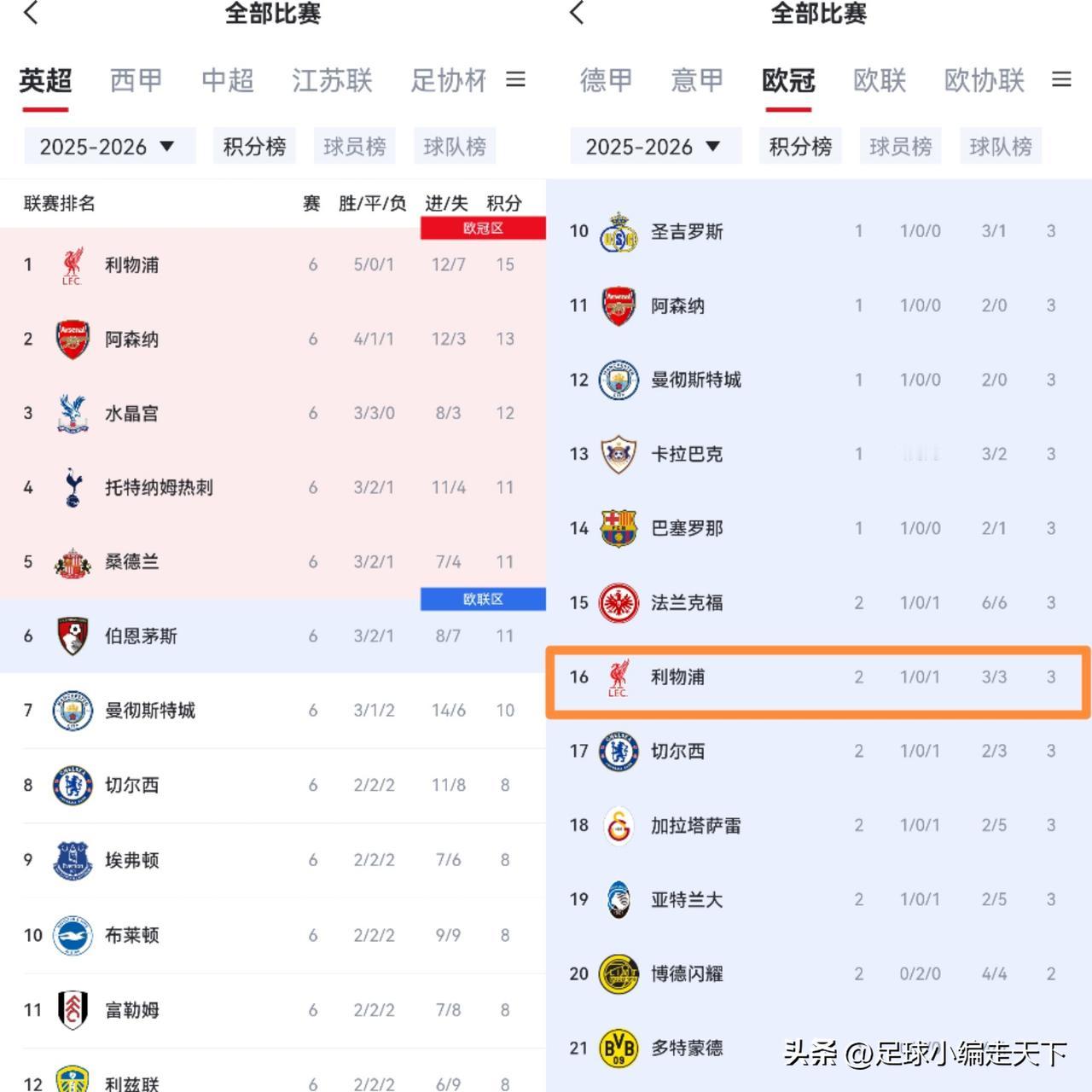 说好英超和欧冠大结局的呢?不是说天下无敌嘛?咋联赛和欧冠都输球了?难不成利物浦这