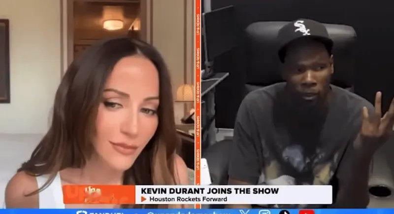 杜兰特邀请知名体育节目女主持人Kay Adams新赛季比赛结束后一起吃烧烤,任何一场比赛都可以!