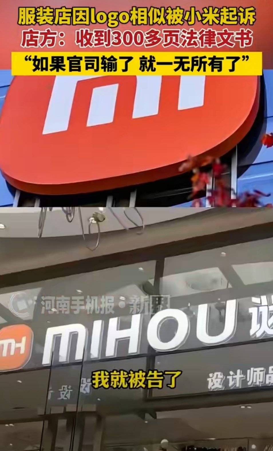 服装店称因logo相似被小米起诉单看logo图标,这字母底色形状都差不太多。不是特别懂,大家觉得被起诉的冤不冤?