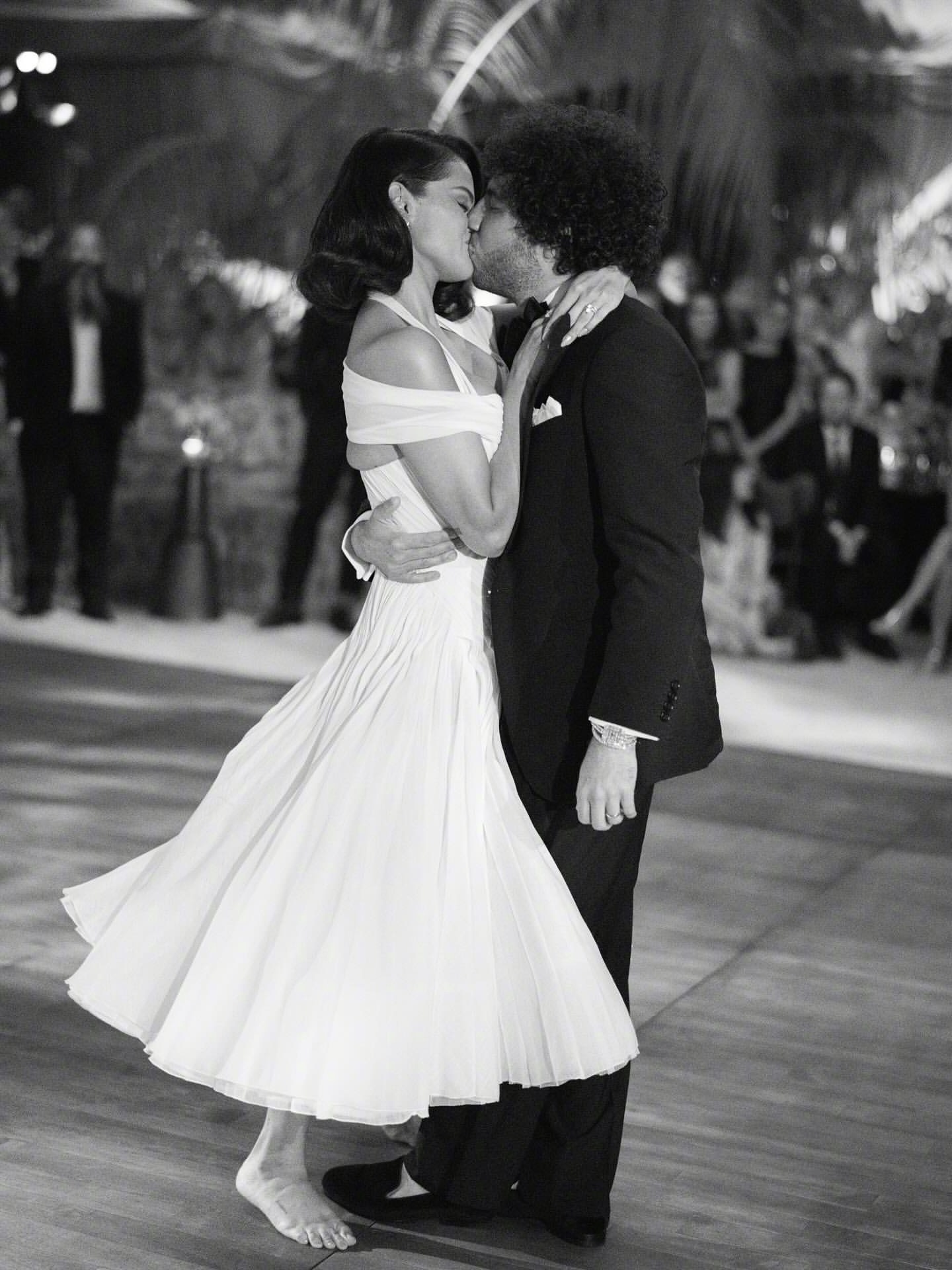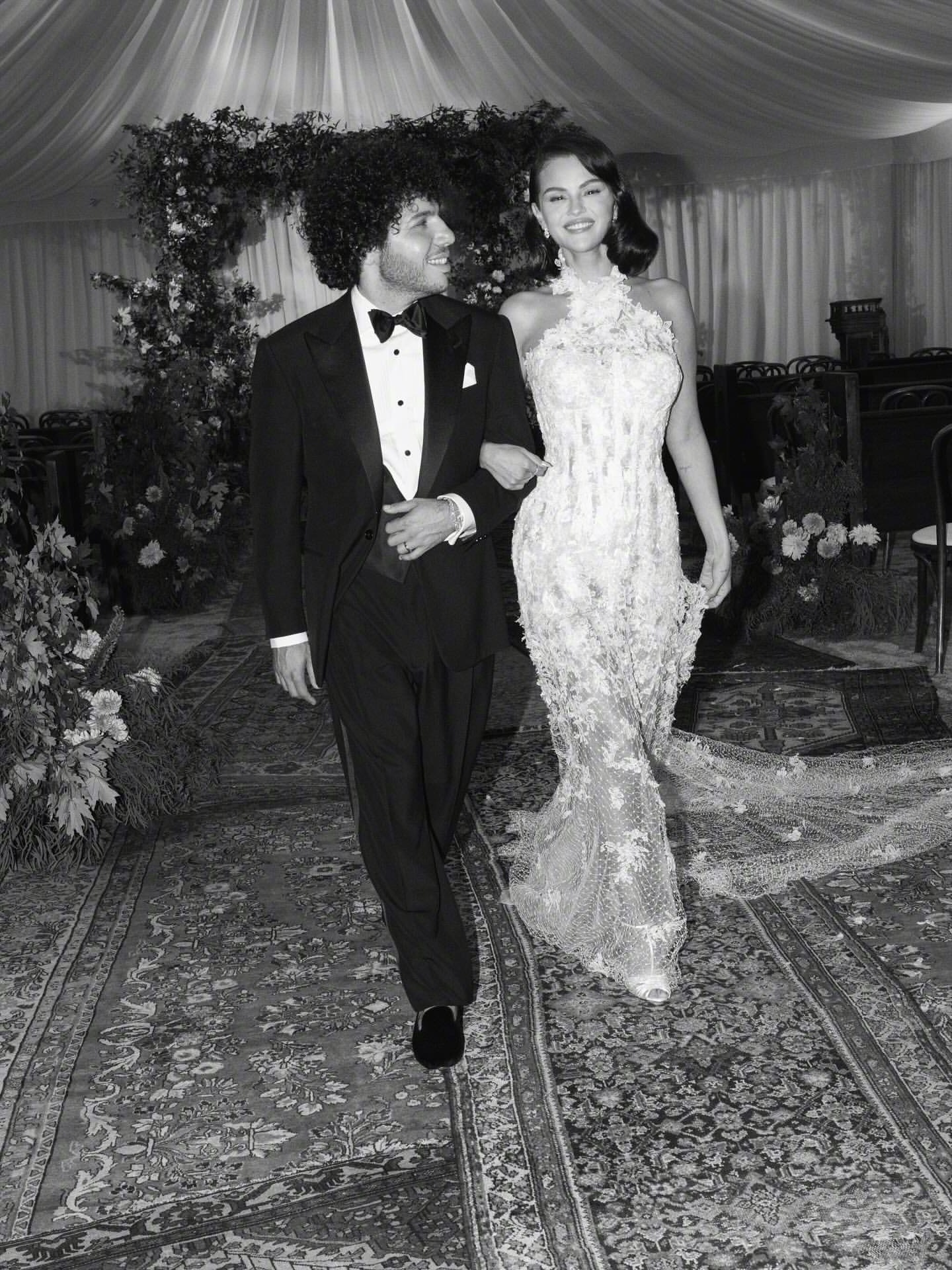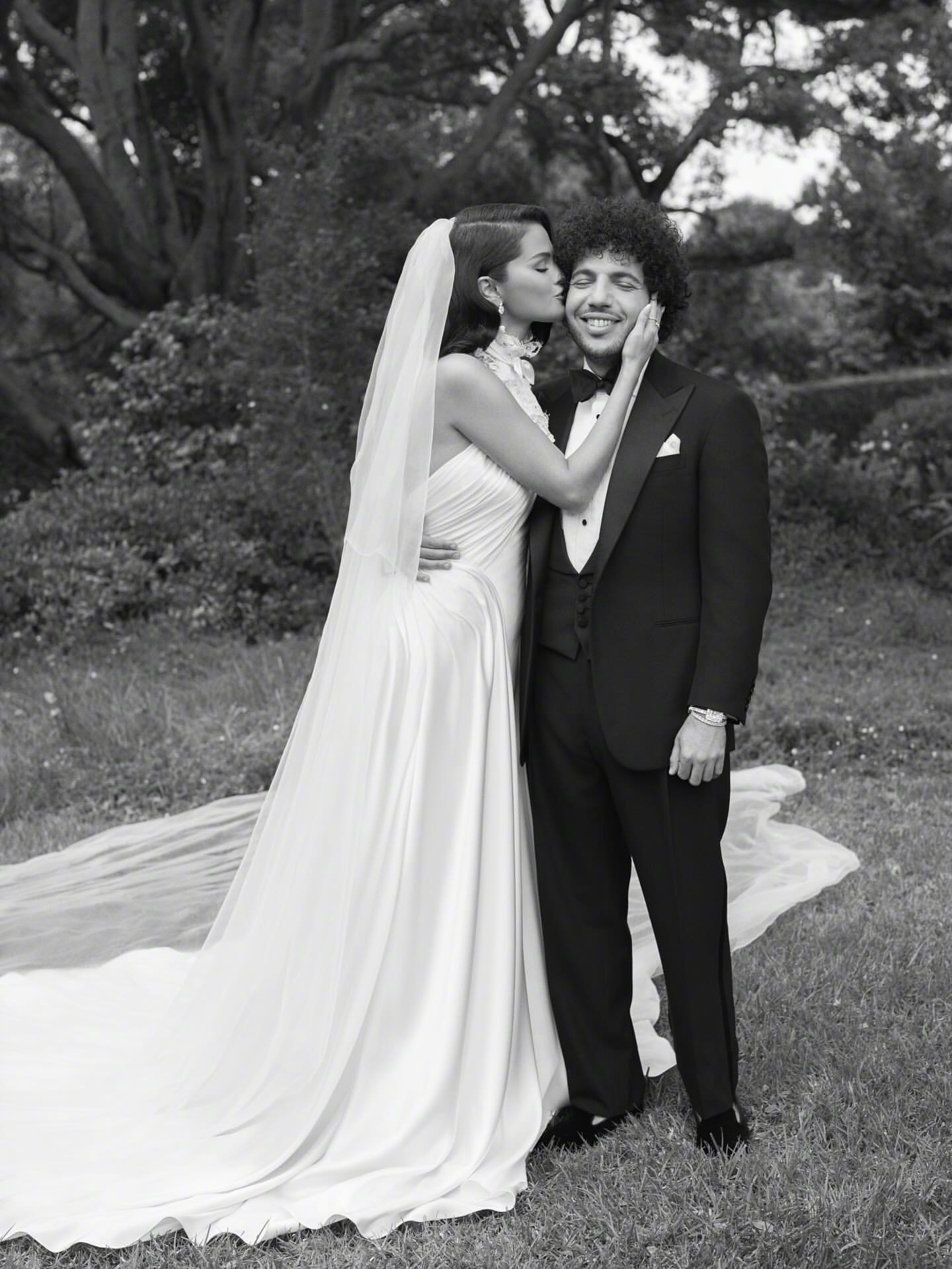 SelenaGomez又分享了一组清晰的婚纱照,两套婚纱,一件晚礼服全部出自