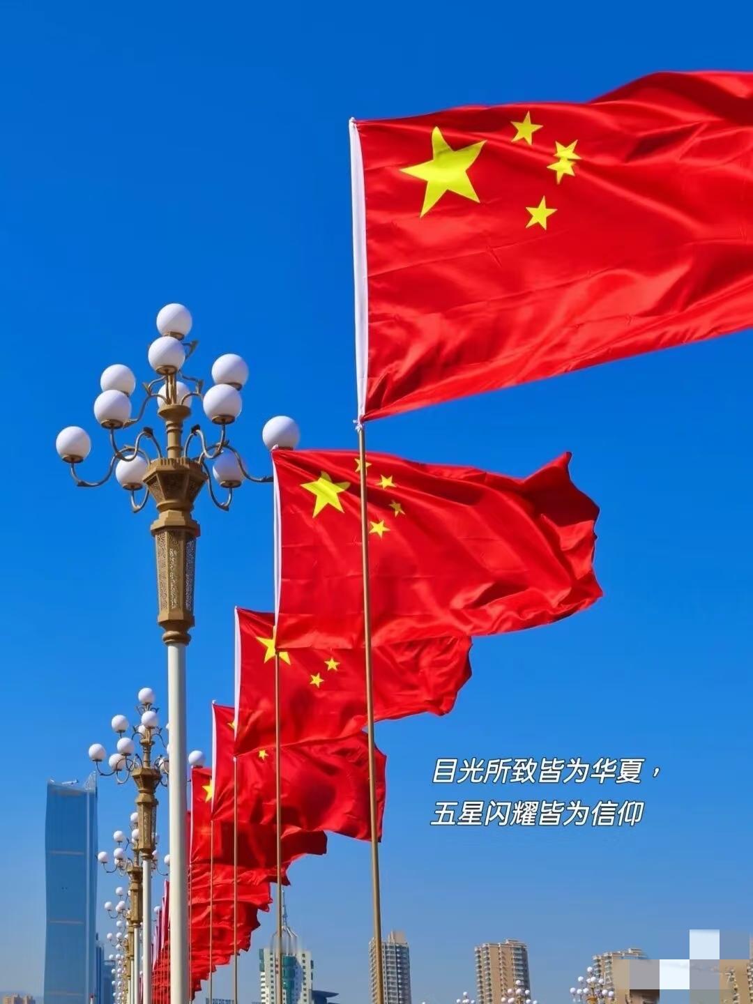 早上好呀!国庆快乐!今早推开窗,刚好看见第一缕阳光裹着国旗的红,风一吹,那抹红晃得人心里暖洋洋的——突然就懂了,生于华夏哪是一句空话,是刻在每个寻常日子里的踏实。 总有人说国庆就是放假出去玩,可你细想,咱们能安稳睡到大天亮,能带着家人逛公园、吃大餐,不都是因为祖国在背后撑着吗?国泰民安从来不是挂在嘴边的词,是楼下早餐摊冒着的热气,是晚归时路灯亮着的暖光,是有人替咱们把风雨挡在外面。 其实国庆更像个温柔的提醒,让咱们别只顾着热闹,也回头看看:现在拥有的每一份安稳,都是祖国给的底气。你今早有没有遇见什么让你觉得“生在华夏真好”的小事呀?评论区聊聊~ 国庆节快乐