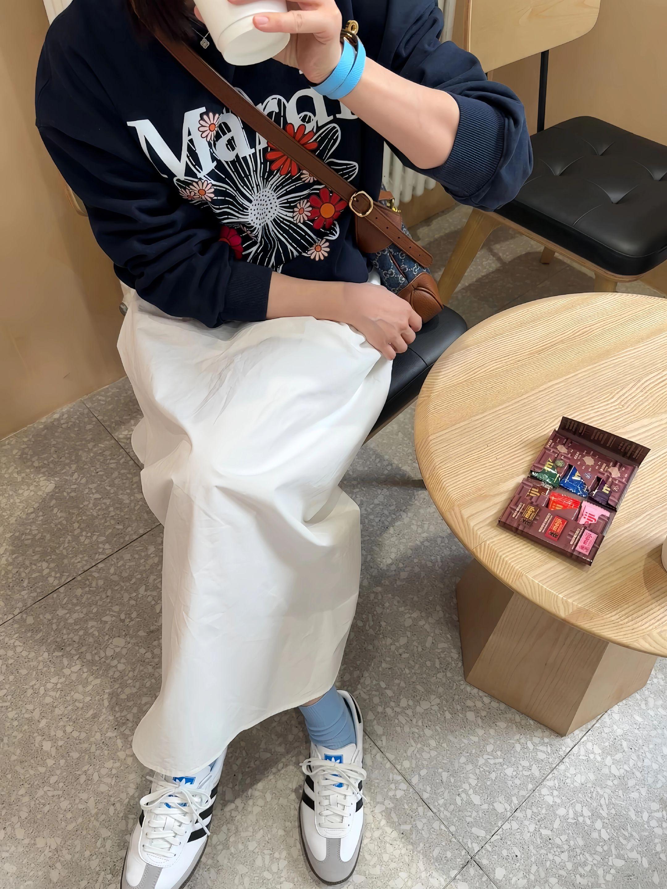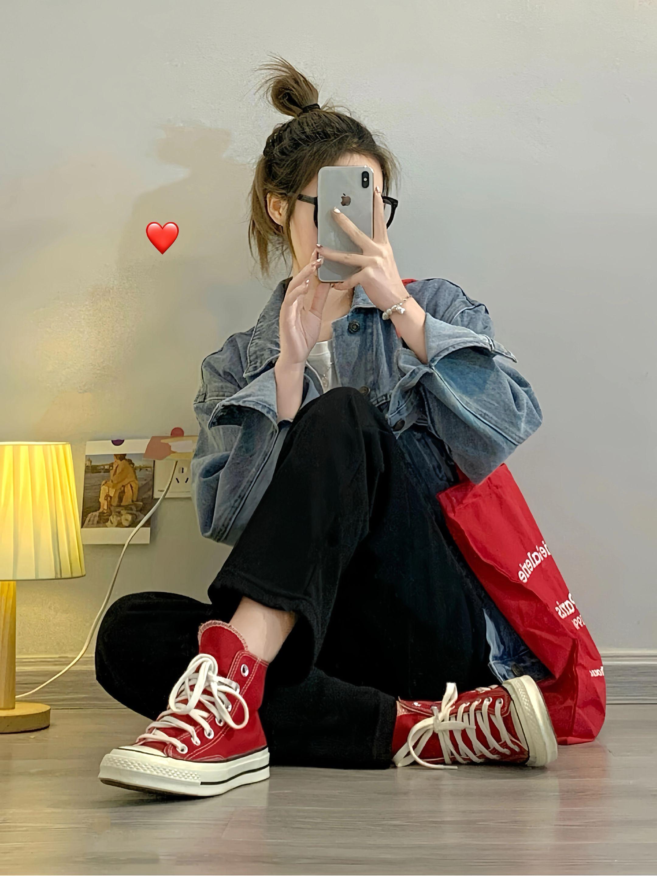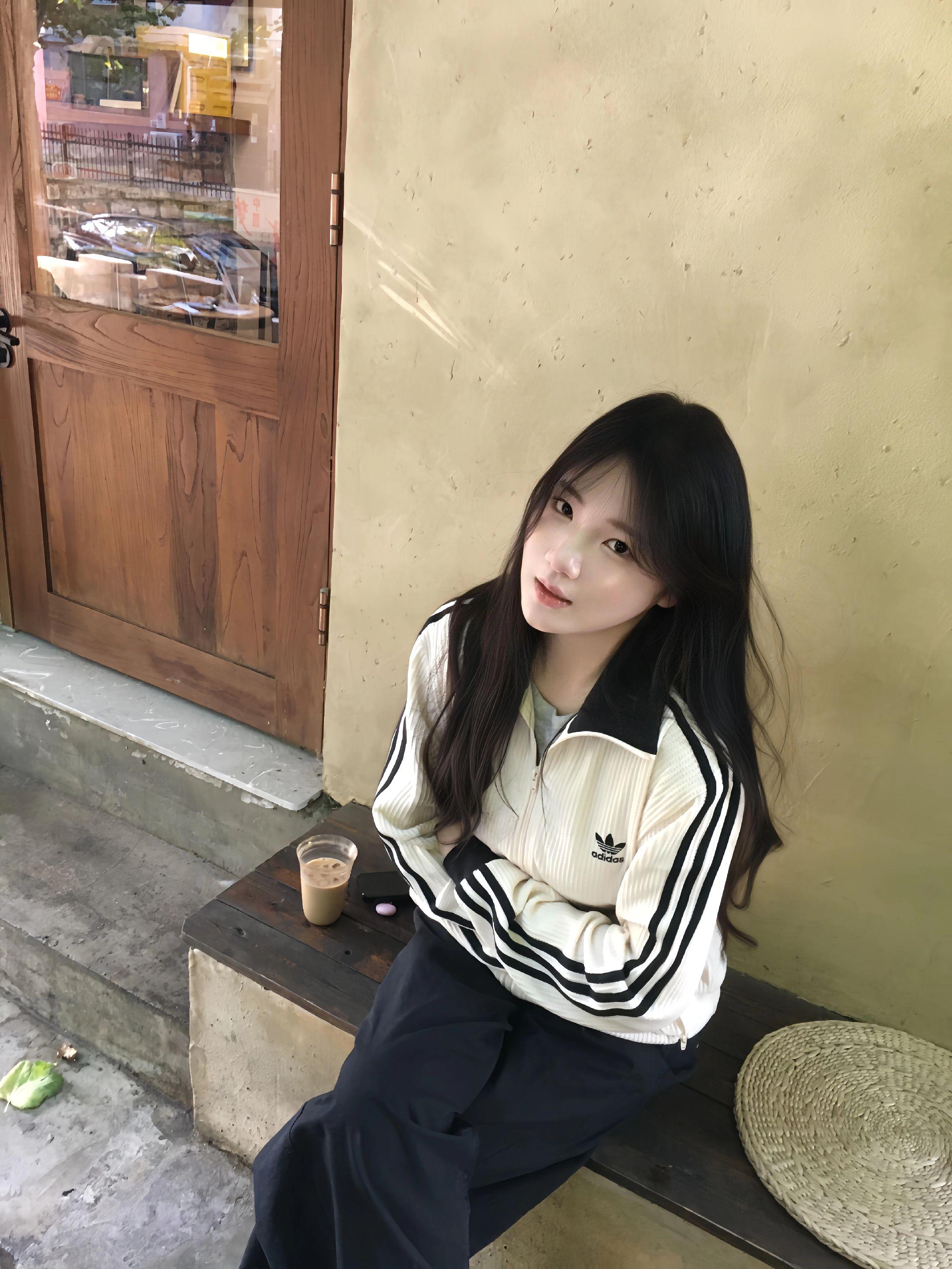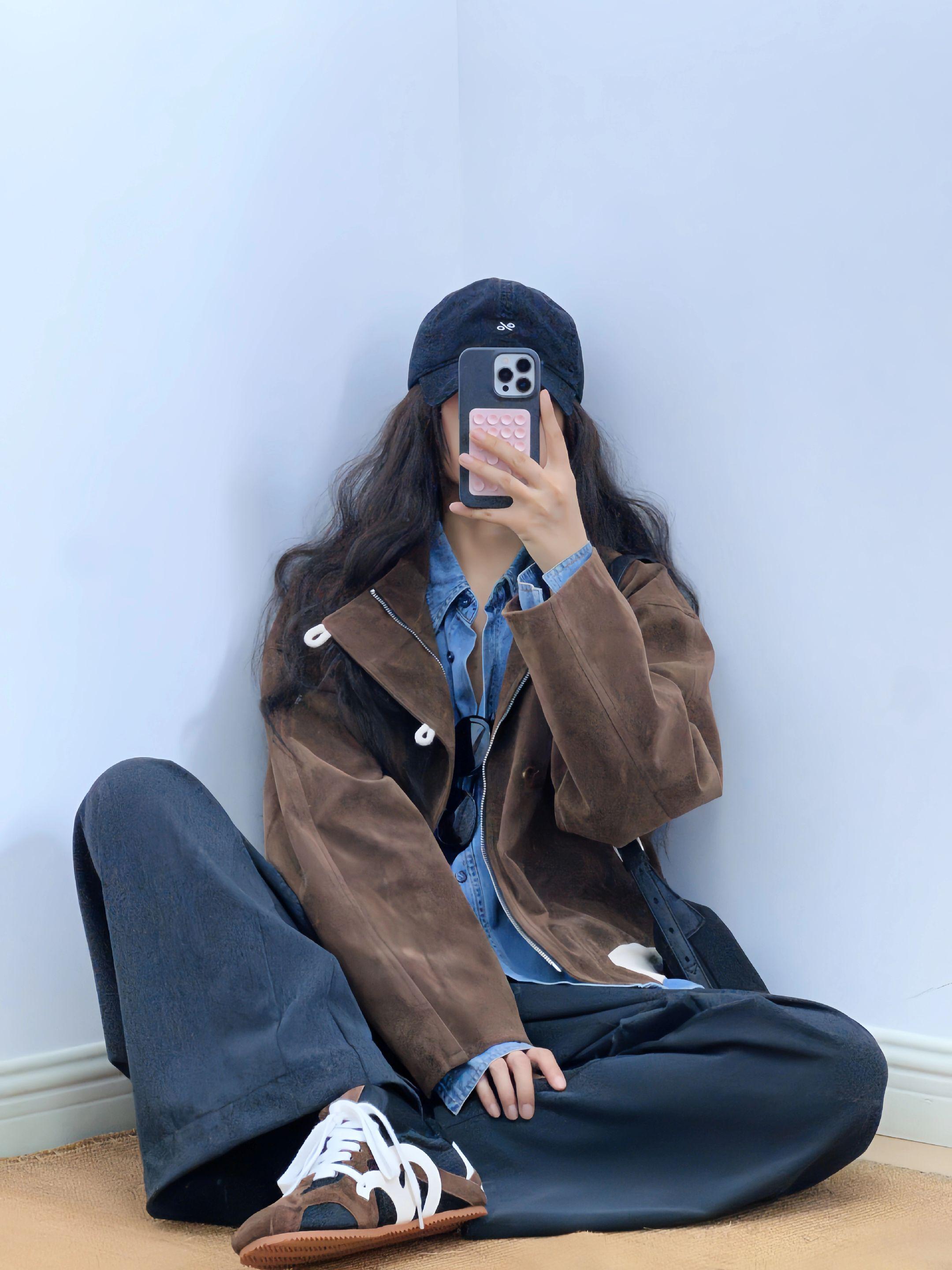 照片的姿态特别抓人,姑娘抬手敬礼,一下就把俏皮感拉满了。浅绿外套的宽松版型和紧身