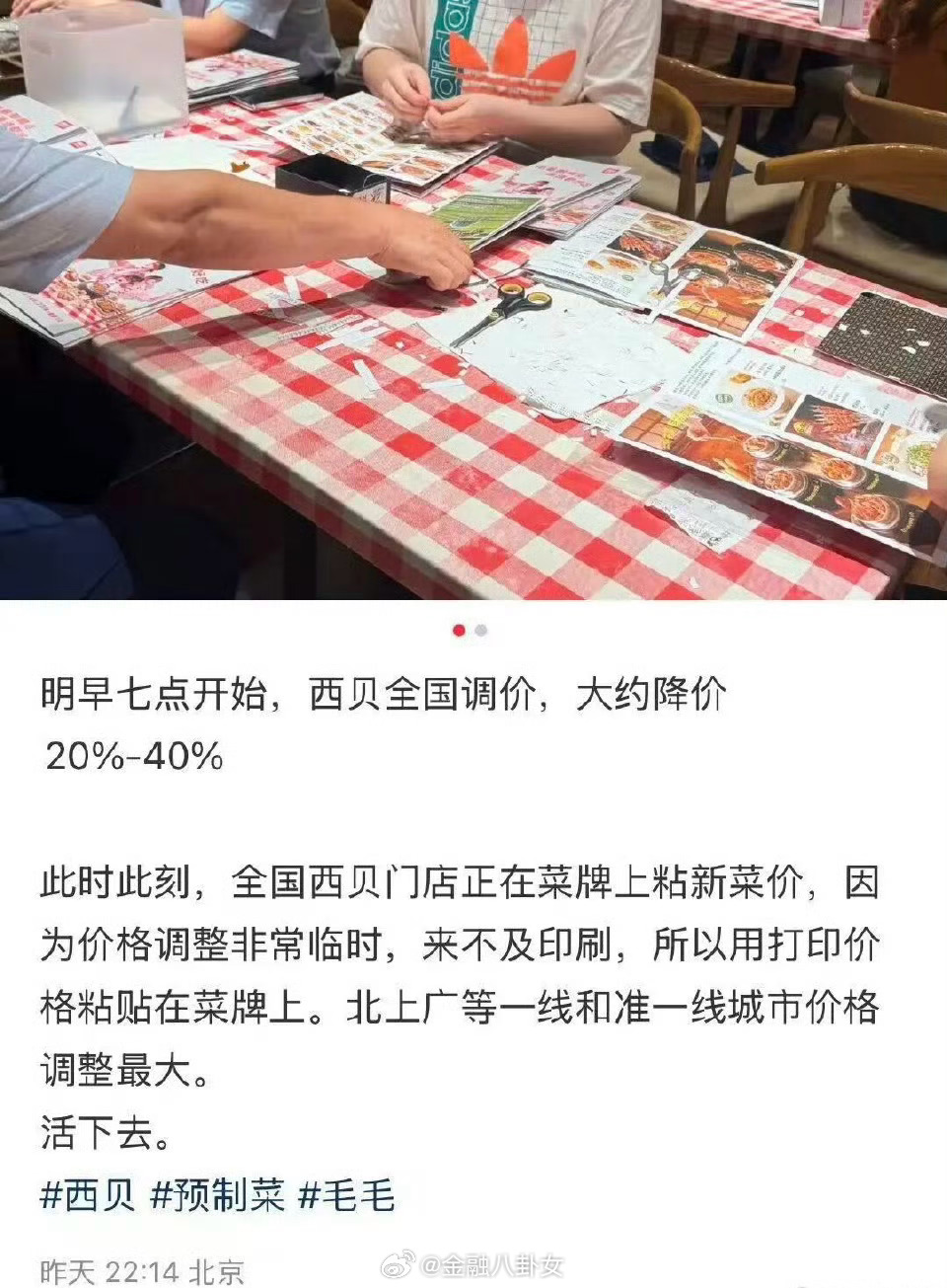 西贝客服回应降价西贝大降价,部分菜品降幅超20%[思考]