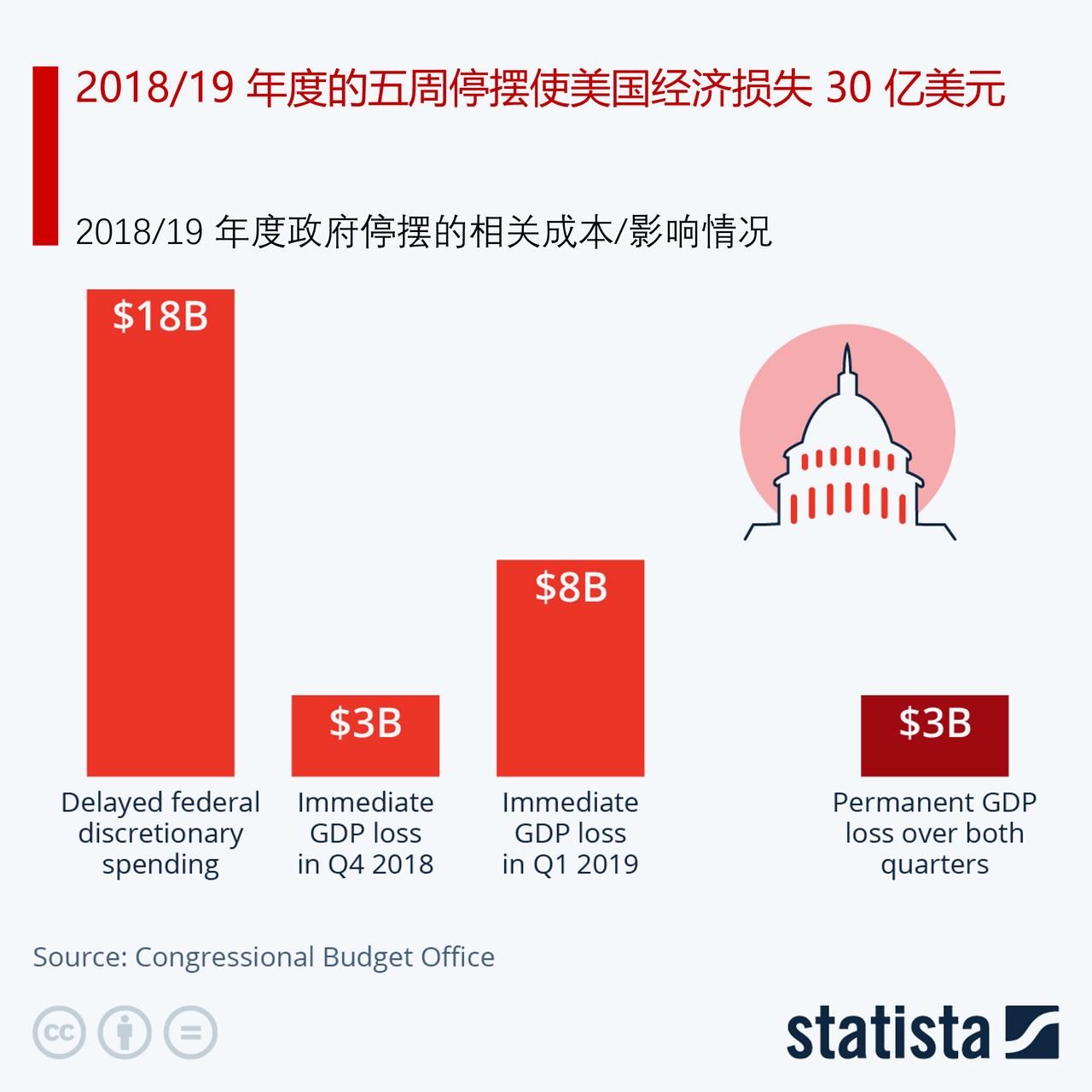 美国再次面临政府停摆的威胁,来看看过去几十年美国政府停摆的时间表 2018 至 2019 年的政府停摆是美国近期历史上持续时间最长的一次,长达 35 天。美国政府停摆的时间表显示,在过去三十年里,政府停摆的时间越来越长,第二长和第四长的停摆分别发生在 1995 年和 2013 年。整个 20 世纪 80 年代,政府停摆次数较多,但持续时间较短;而在 20 世纪 70 年代,停摆时间也有所延长,但仅在 1978 年超过两周。政府停摆并非罕见之事:自 1976 年以来,共发生过 20 次停摆,平均每次持续 8 天。 美国国会预算办公室的一项分析显示,2018 年 12 月至 2019 年 1 月期间长达五周的美国政府停摆使美国国内生产总值减少了 30 亿美元。因联邦工作人员被强制休假而造成的产出损失、政府支出和工资支付的延迟或中断,以及需求的减少,这两个月间给经济造成了 110 亿美元的损失。在 1 月 25 日政府停摆结束后的短期内,这部分损失中有 80 亿美元得到了弥补。在这五周期间总共延迟的联邦支出为 180 亿美元,其中 30 亿美元与被强制休假员工的工资有关(这部分支出无法收回),而另外 60 亿美元是停摆结束后预计支付给关键员工的工资。剩余的 90 亿美元则是通过政府在商品和服务方面的支出弥补的,但这些支出在停摆结束后也只能部分得到补足。 截至2025年 9 月 30 日,美国政府正面临又一次停摆的威胁,因为关于必要的预算立法以及用于维持政府运转至 11 月 21 日的所谓临时法案的协议均未达成。由于国会需要更多时间来就 2025/26 年度的实际支出法案达成一致,临时法案可能是避免从10月1日凌晨 12 点起再次停摆的唯一办法,但其未来仍充满不确定性,因为共和党和民主党在具体细节上无法达成一致,尤其是在医疗保健方面。尽管共和党在参议院占据多数席位,但这一优势已不足以达到通过预算立法所需的 60 票门槛。 由于共和党在参议院的优势相当微弱,他们无法独自获得通过临时拨款法案(或最终预算法案)所需的 60 票。由于 7 月的《大而美法案》是通过和解程序通过的,共和党无法再次绕过参议院的超级多数。与此同时,民主党似乎已经摆脱了对政府停摆会让共和党更容易解雇更多联邦雇员的担忧。