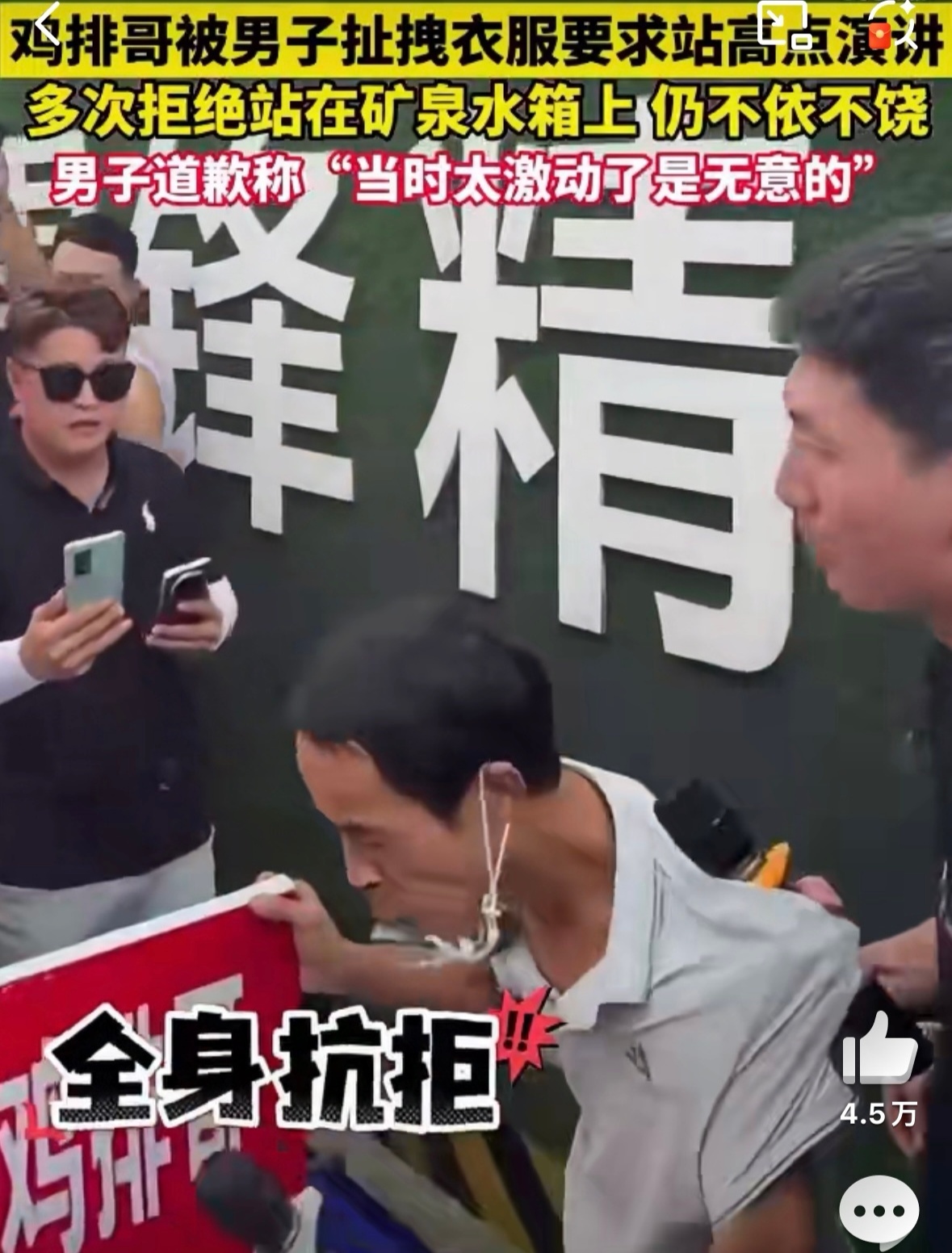 鸡排哥被男子扯拽衣服要求站高点演讲这样大庭广众之下扯拽一个人的衣服,真的很不