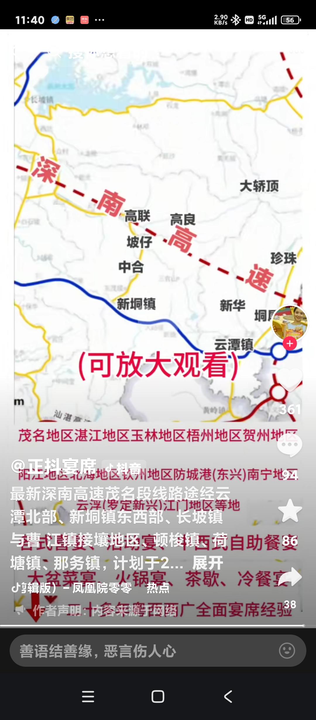 化北高速开工启动仪式再次举行,茂名市相关领导出席活动。 这个几经波折、多次搁置的化北高速项目,迎来了一批又一批领导,一台又一台挖掘机进场,就连鞭炮都放了好几串。如今,此事终于尘埃落定。 这条高速是深南高速茂名段的一部分,是连接汕湛高速、对接电白那霍,途经高州云潭、横贯三官山山脉,经过高州新垌、曹江等镇的交通要道,与化北各镇相衔接。 它也使高州云潭、新垌告别了不通高速公路的历史。 规划中的深南高速茂名段,届时将设置三官山停车区!