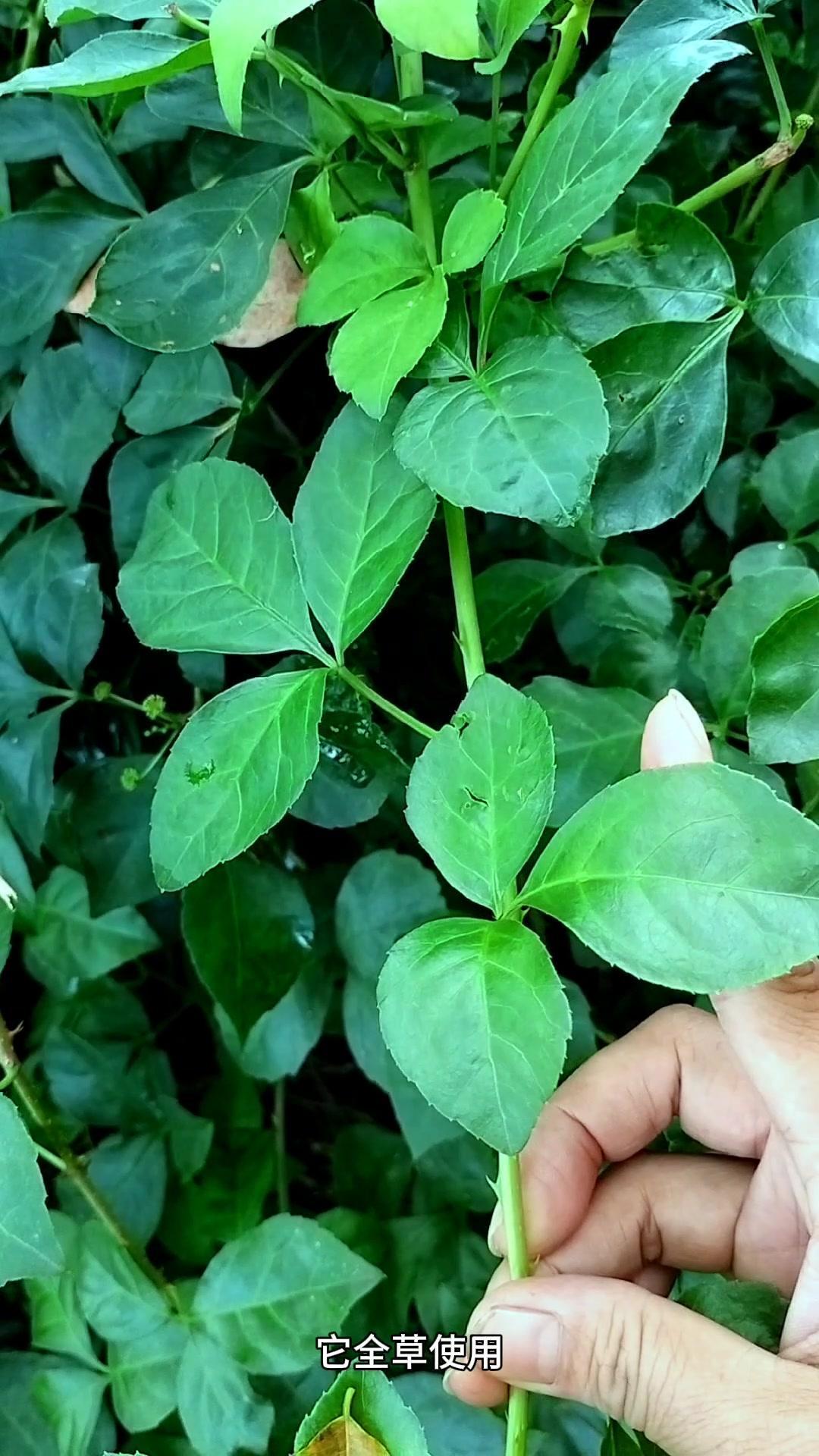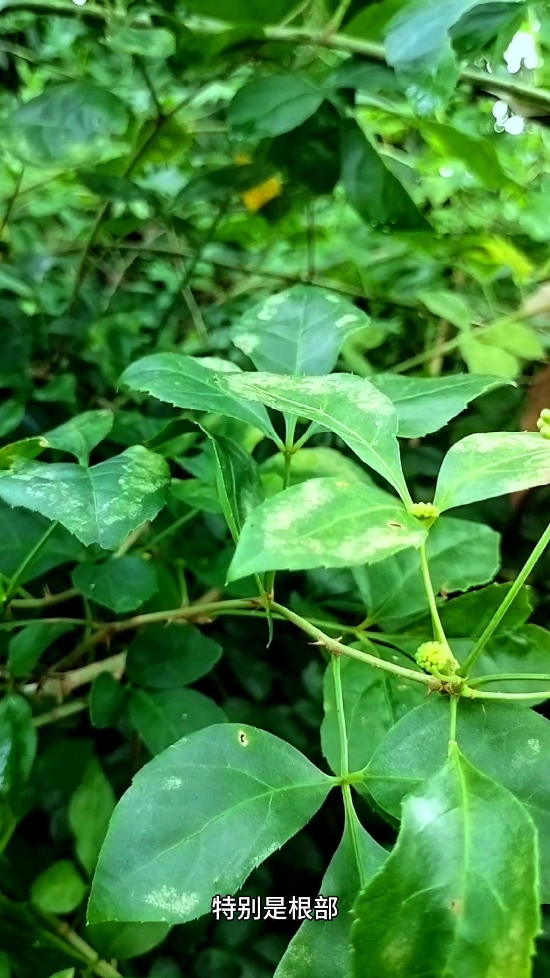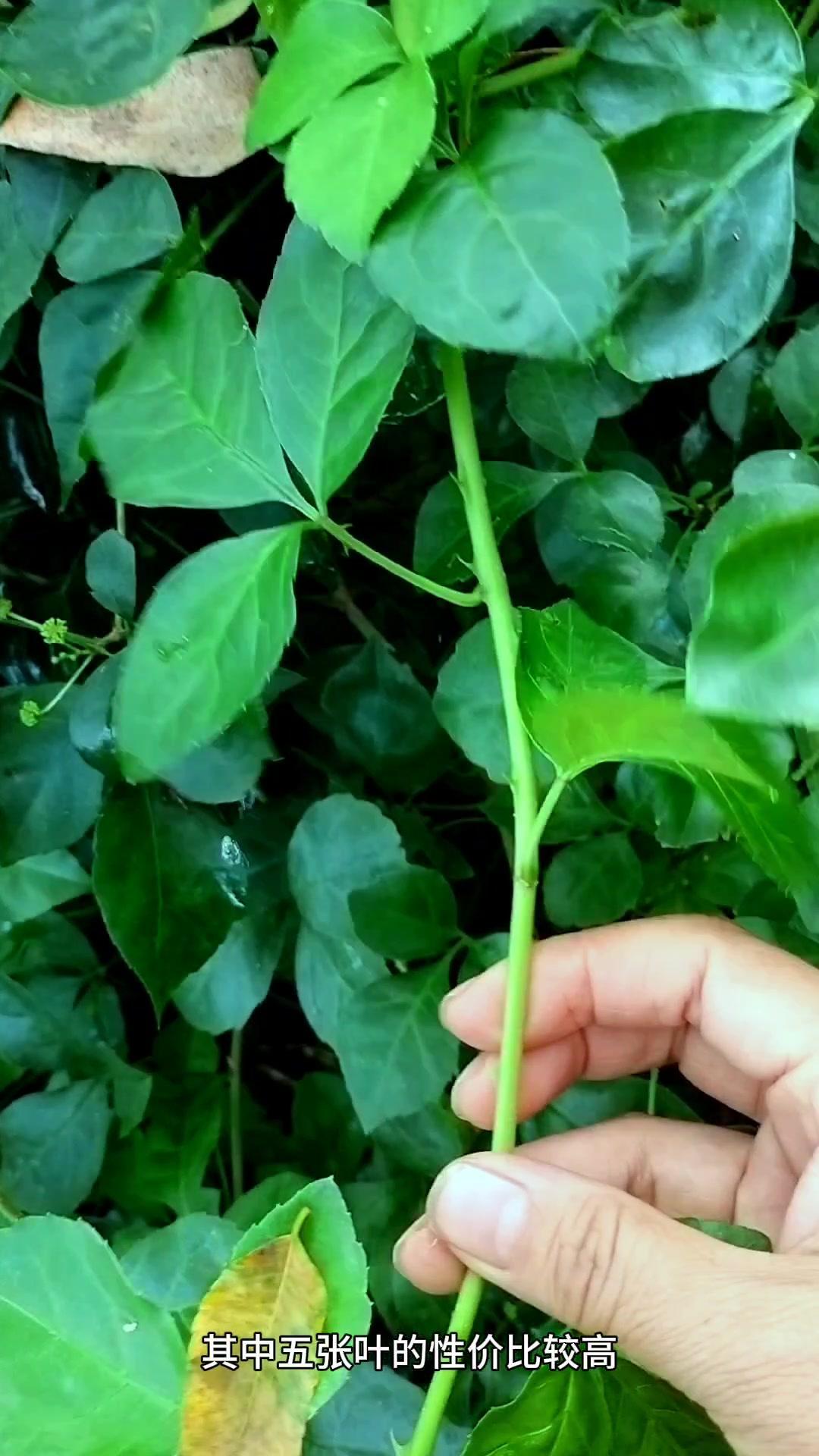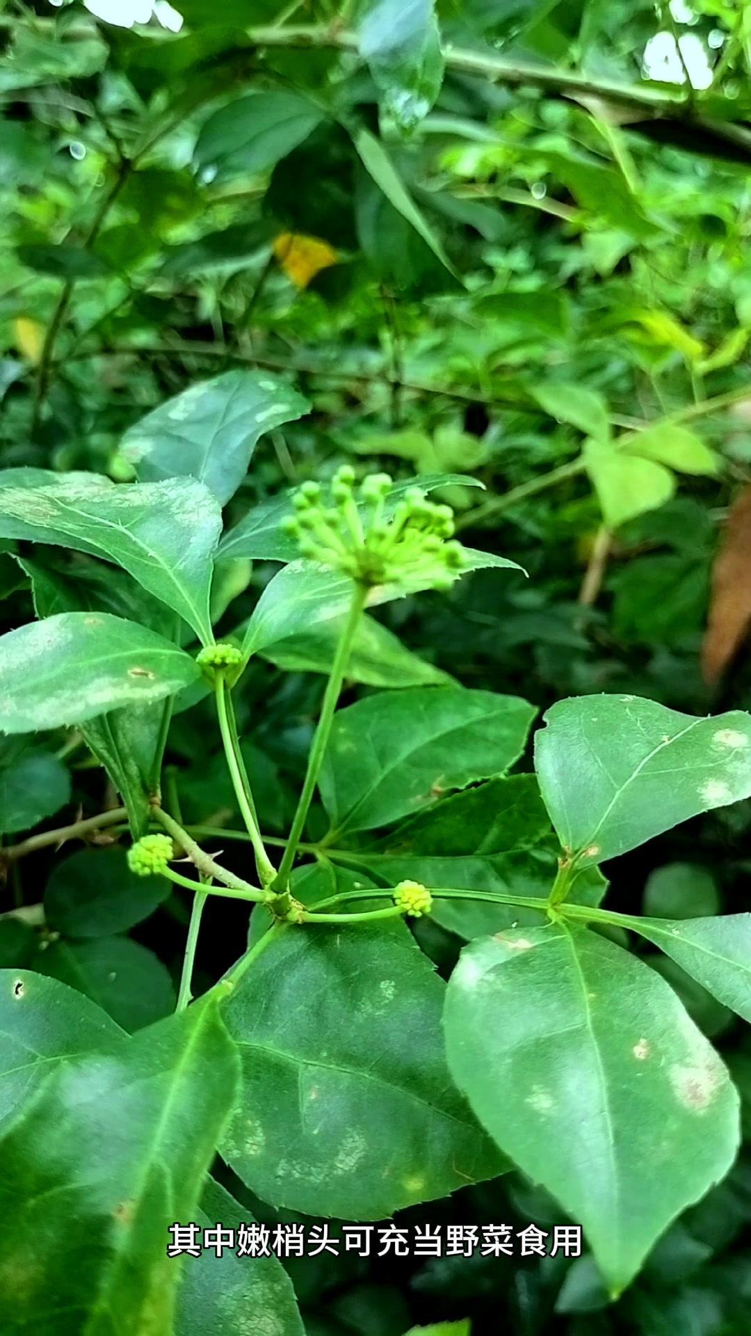 现在摘的这种嫩枝头就是大名鼎鼎的刺五加。它有三张叶和五张叶之分,其中五张叶的性价比较高。 它全草使用,特别是根部,其中嫩梢头可充当野菜食用。