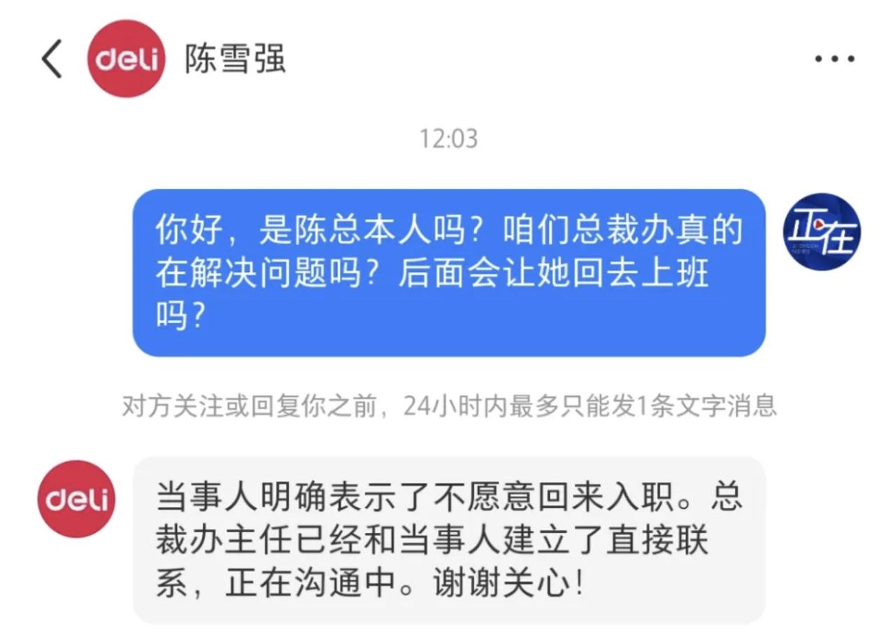 女子因为跛脚问题入职当天,被得力辞退事件最新后续来了! 得力总裁办主任邀请女子面