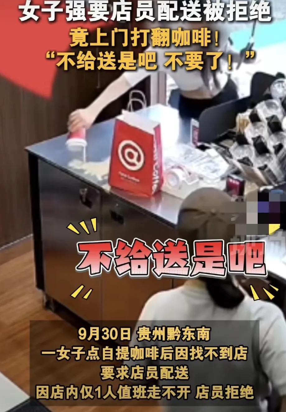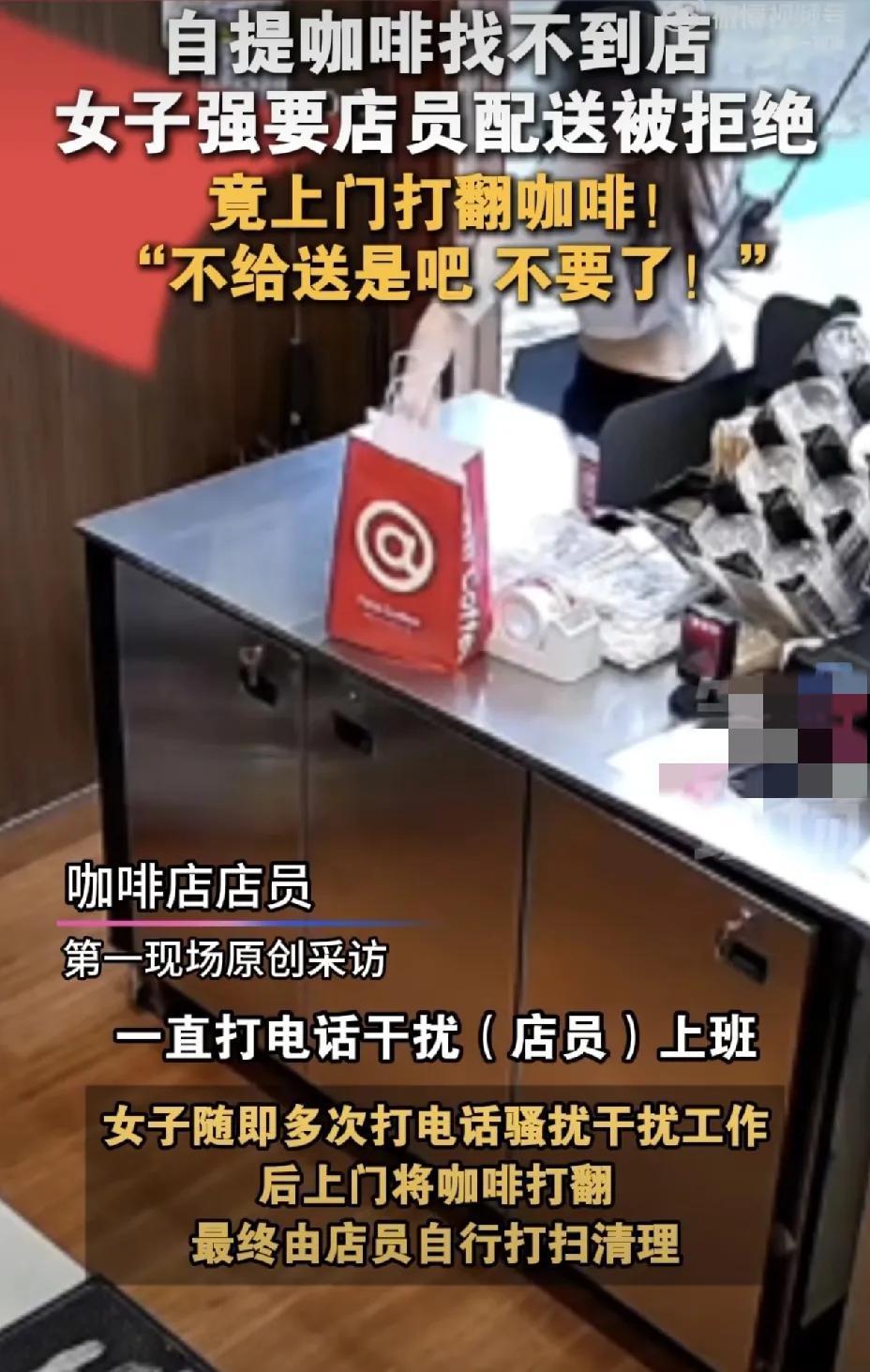 真是让人无语。就为了一杯咖啡,找不到店可以好好问路好吧,要不取消订单都行,非要打电话骚扰人家。店里就一个人值班,总不能扔下店给你送咖啡吧?人家不送,还上门打翻咖啡甩脸子,这脾气也太大了。现在谁工作都不容易,互相理解这么难吗?真没教养啊。教养 社会百态