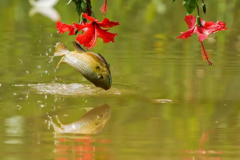 上联:池边看鱼跃,诚邀下联岸畔听鸟鸣
