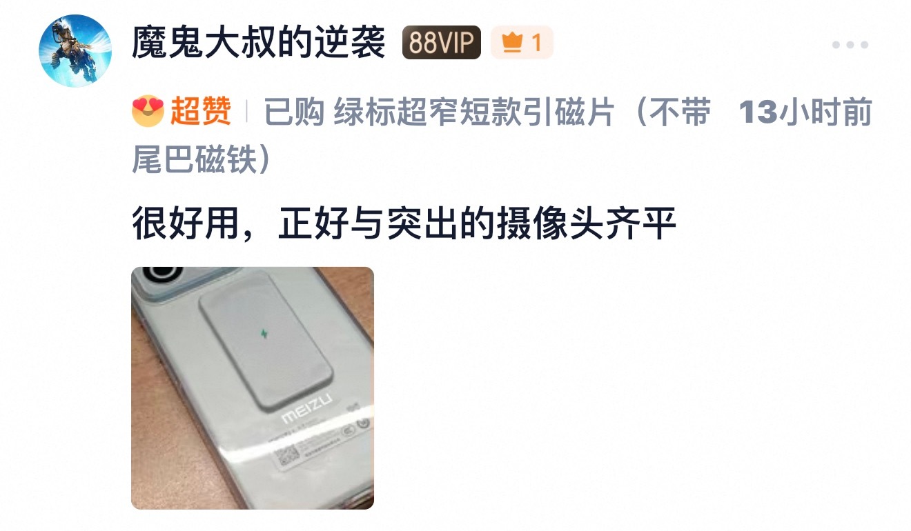 不错,魅族22搭配超窄短款引磁片晒单[点赞]采用定制磁铁模组,兼顾了厚度跟磁