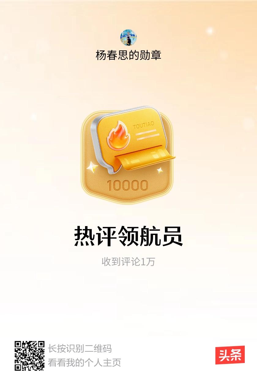我获得了【热评领航员】勋章!邀请你一起集头条勋章、记创作之路!