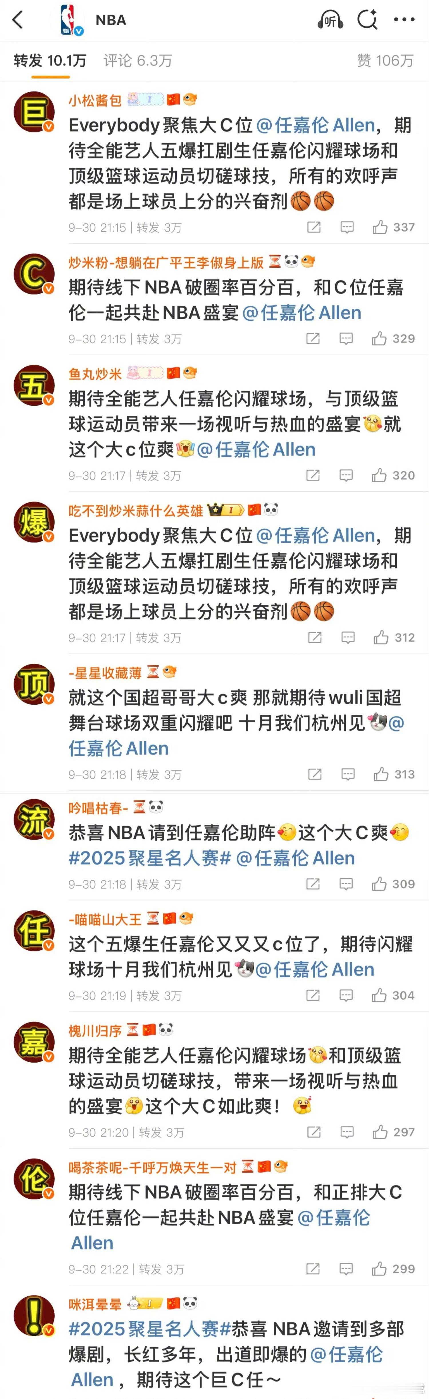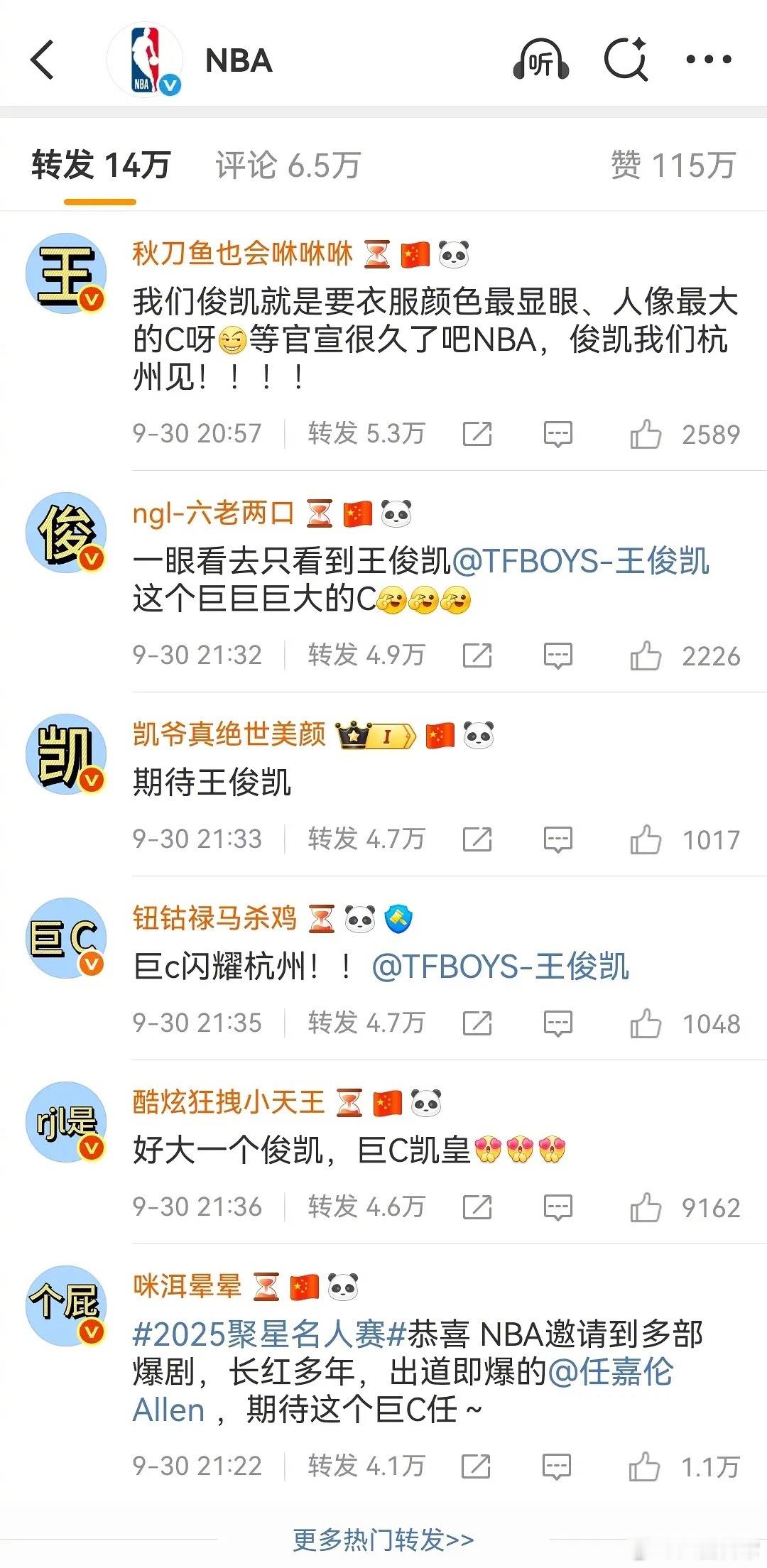 王俊凯粉丝和任嘉伦粉丝在NBA官宣博排字