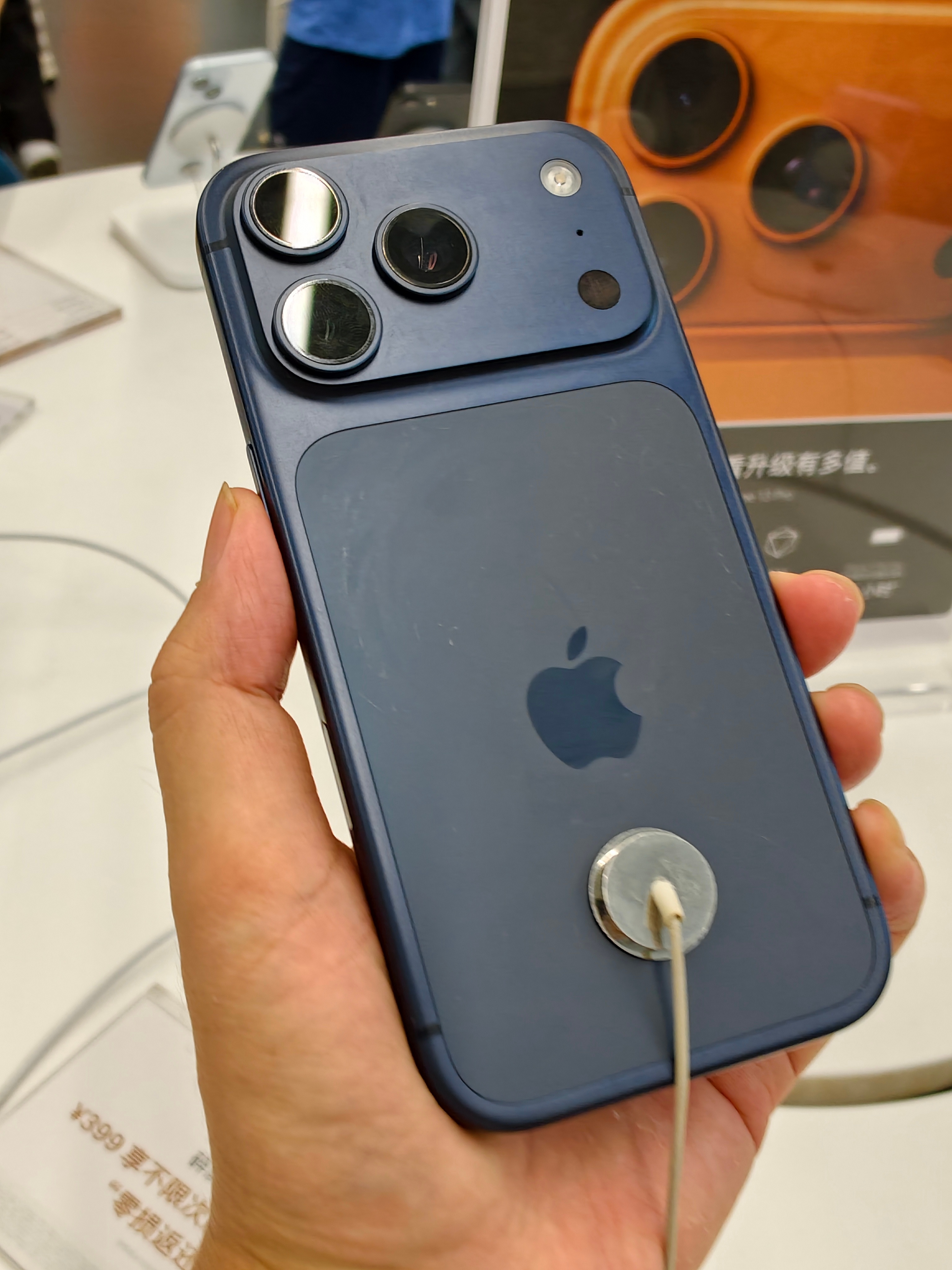 门店的iPhone17系列体验背部机基本都花了不耐造,特别是蓝色好明显[允悲]