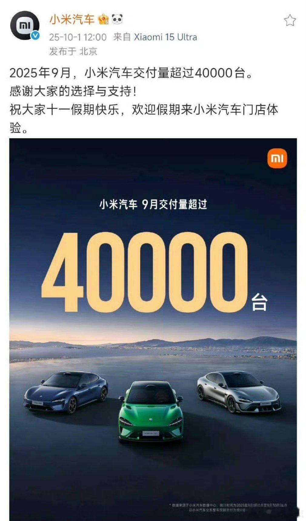 小米汽车销量 一个月交付量超过40000台,真猛[good]