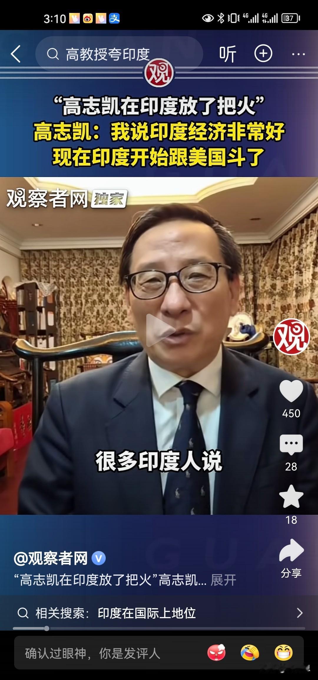 美国说印度是死亡经济,高志凯教授说印度经济很好。不管怎么说,高志凯在印度人那里很