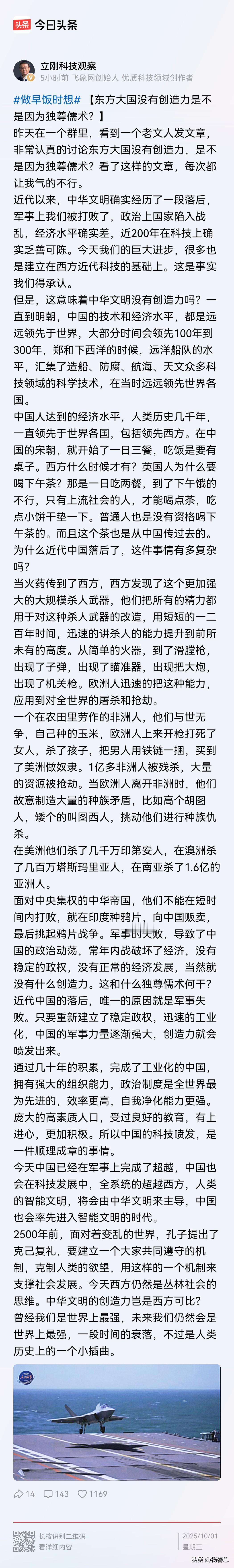 那些到现在还说中国没有创造力的,不是公知就是又蠢又坏。中国自古以来一直领先西方领