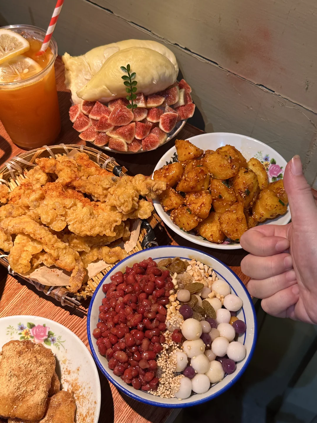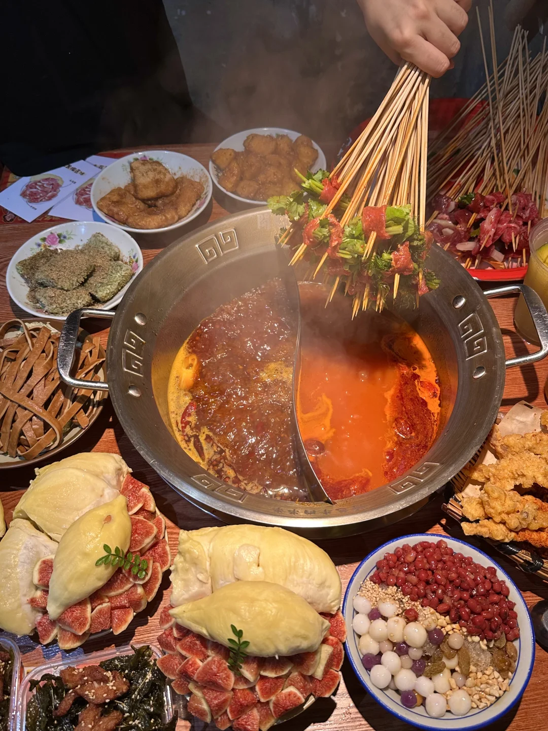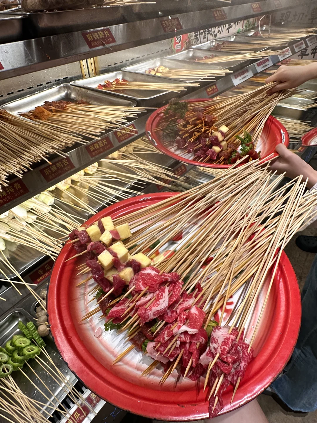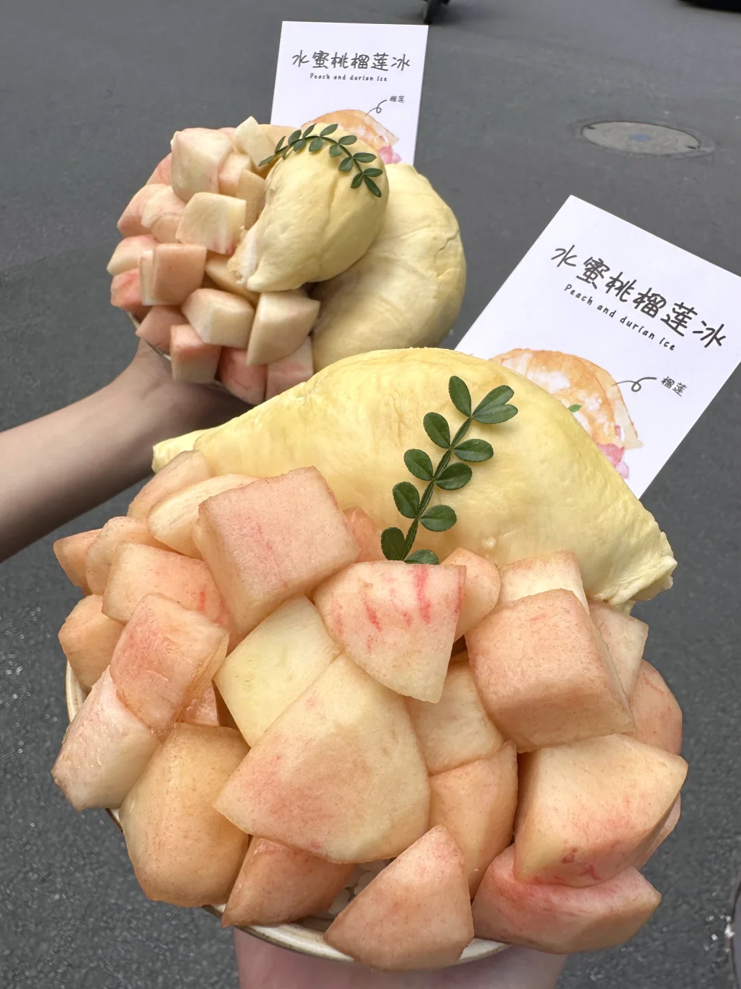 还有白草莓牛奶冰和车厘子牛奶冰,吃串配雪冰,太解辣啦