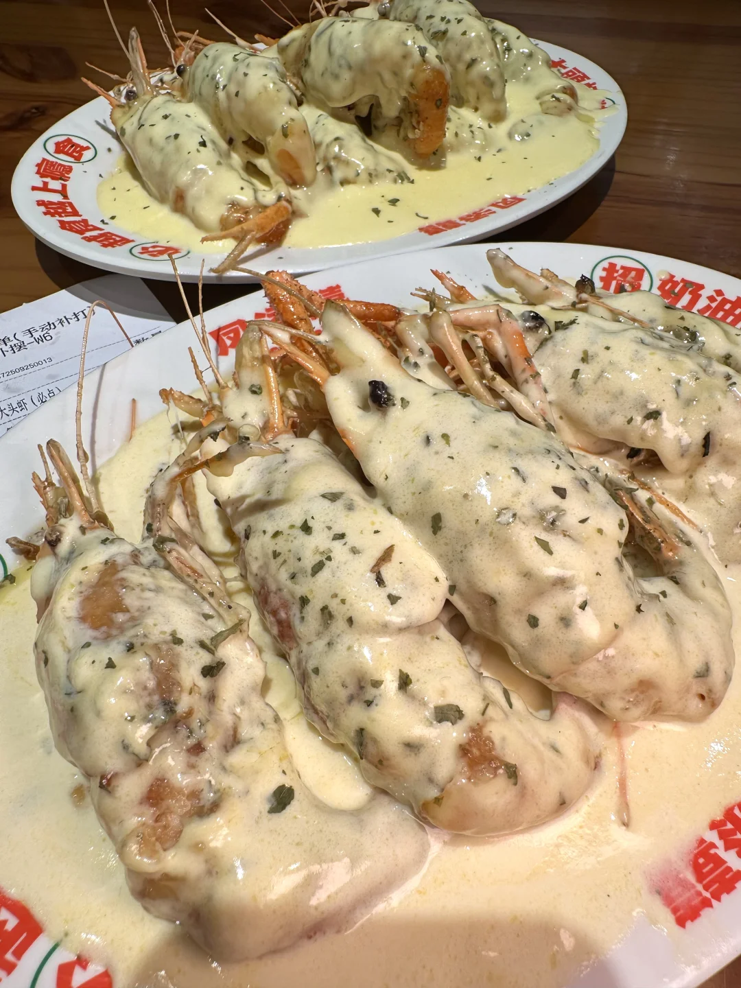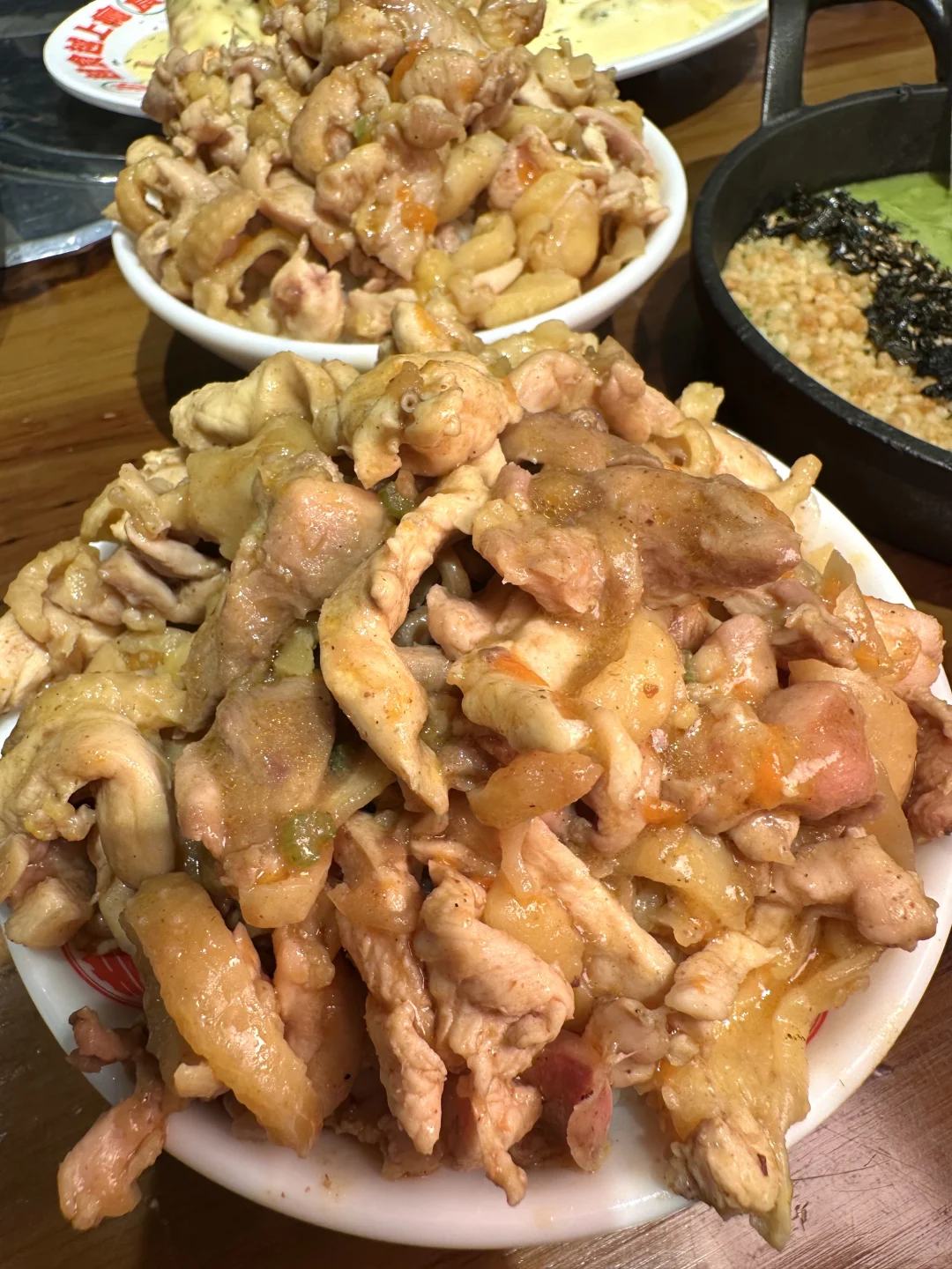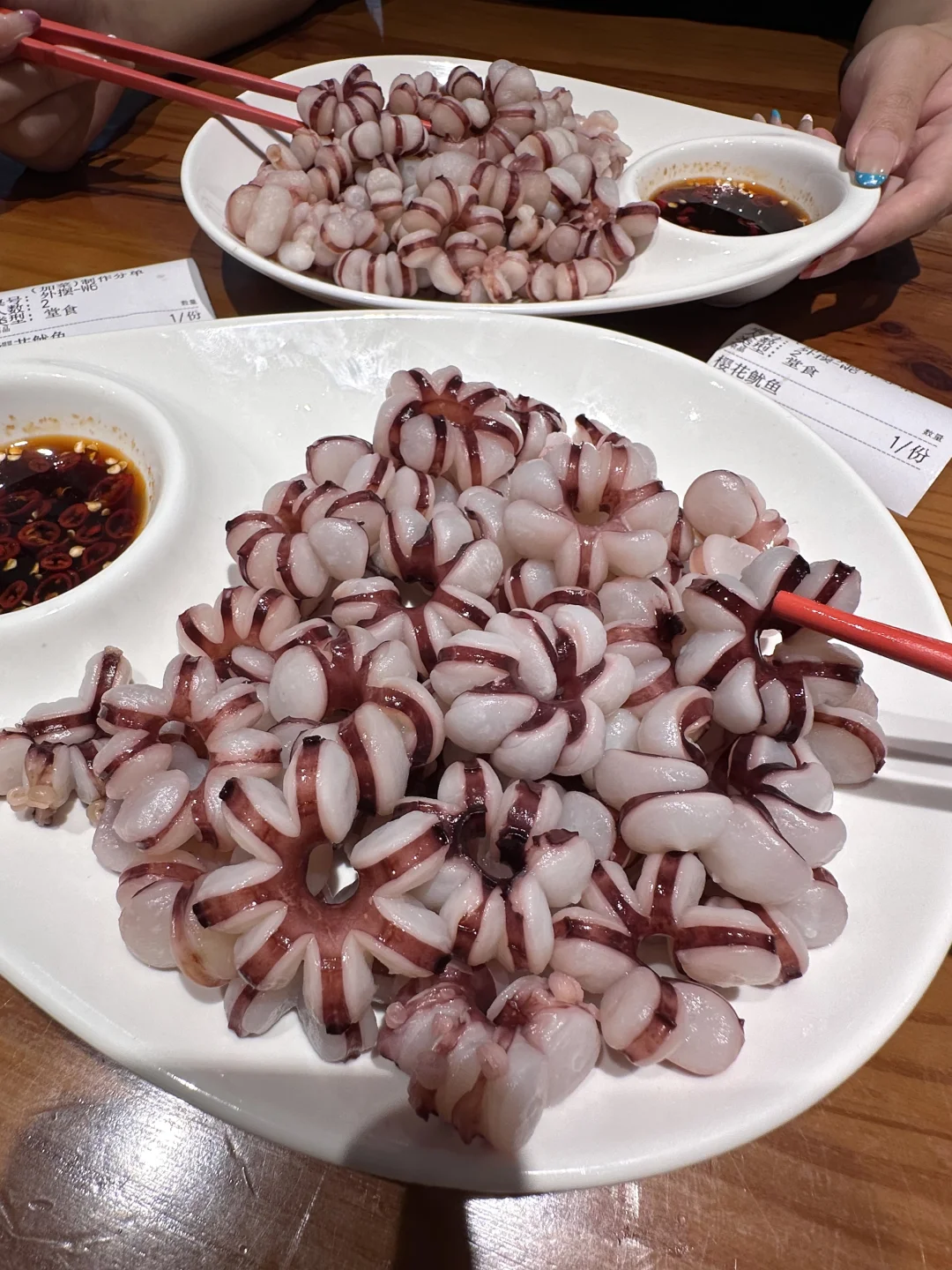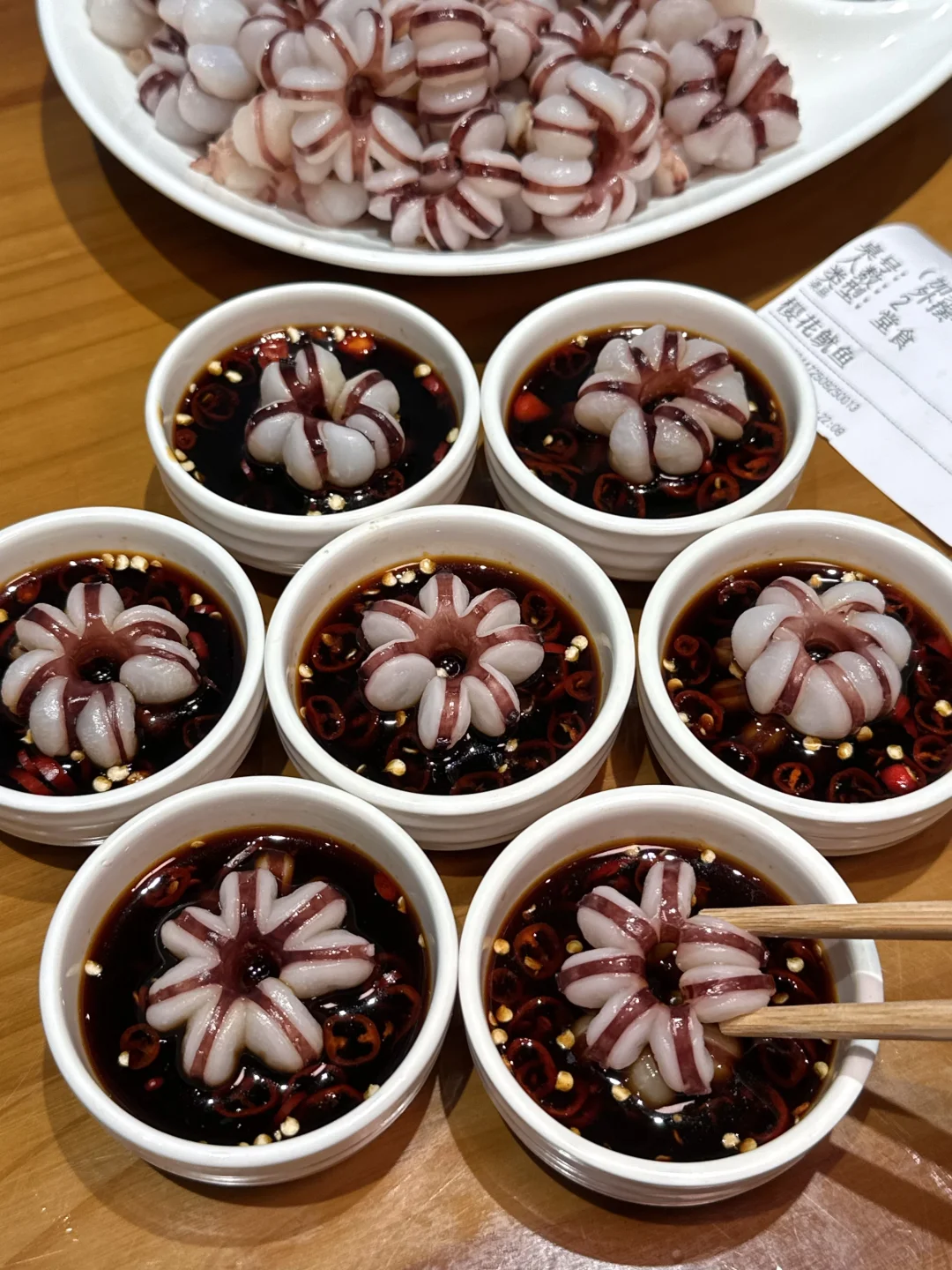 沙嗲鸡翅!!!在无锡吃过一次,念念不忘! 香酥香酥的,沙嗲味真的好喜欢! 还有沙嗲牛排煲配燕皮千丝一起煮! 还有樱花鱿鱼 🦑 ·