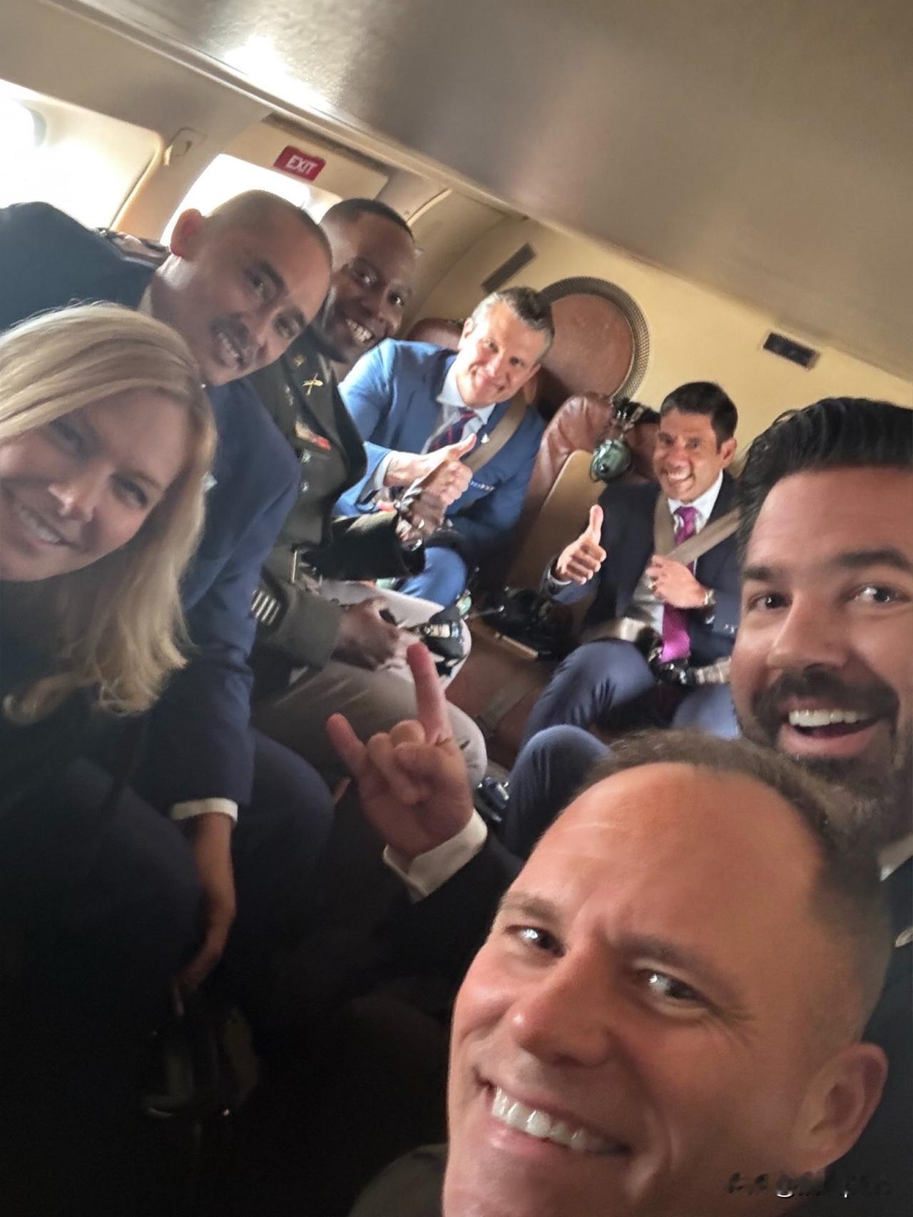 美国战争部长赫格塞斯开完800多名美军将军的会议之后,与一些军官乘坐飞机离开了匡蒂科。特朗普也出席了这次会议。 在飞机里的画面来看,赫格塞斯心情大好,其他的与会军官也很兴奋。赫格塞斯等人竖起了大拇指,而一人更为兴奋,比出摇滚手势。 尽管800多名美军将军里面有很多从海外驻地返回美国开会,但也难得利用这一机会回到故乡。看起来,赫格塞斯似乎达到了他的目的,调整美军的军纪与士气。