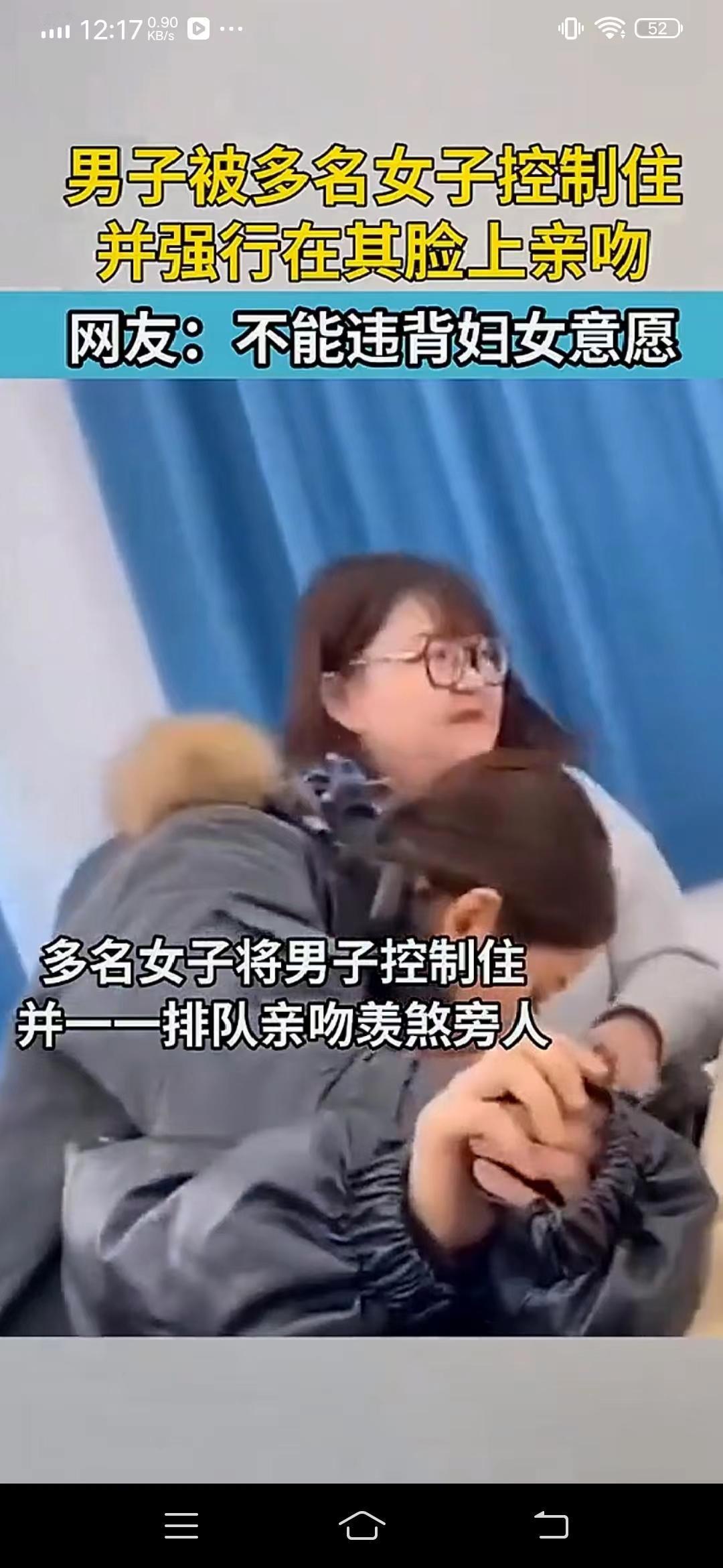 干柴只见火没燃烧 原来女子也有饥饿难耐的时候,几名中年女子将一中年男子按住,分别亲吻男子,过干瘾。 网友:干涸了、饿了、要脫水了,久旱逢甘露。能吃一嘴是一嘴。