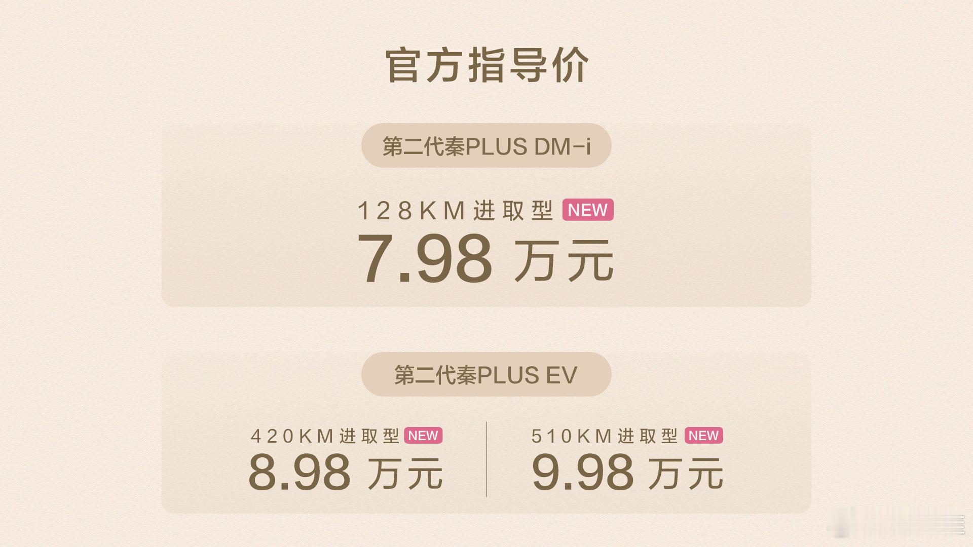 9月25日,比亚迪第二代秦PLUS双车上新,发布了秦PLUS DM-i 128KM进取型、秦PLUS EV 420进取型、510KM进取型三款新车,以更低门槛开启高品质车生活。