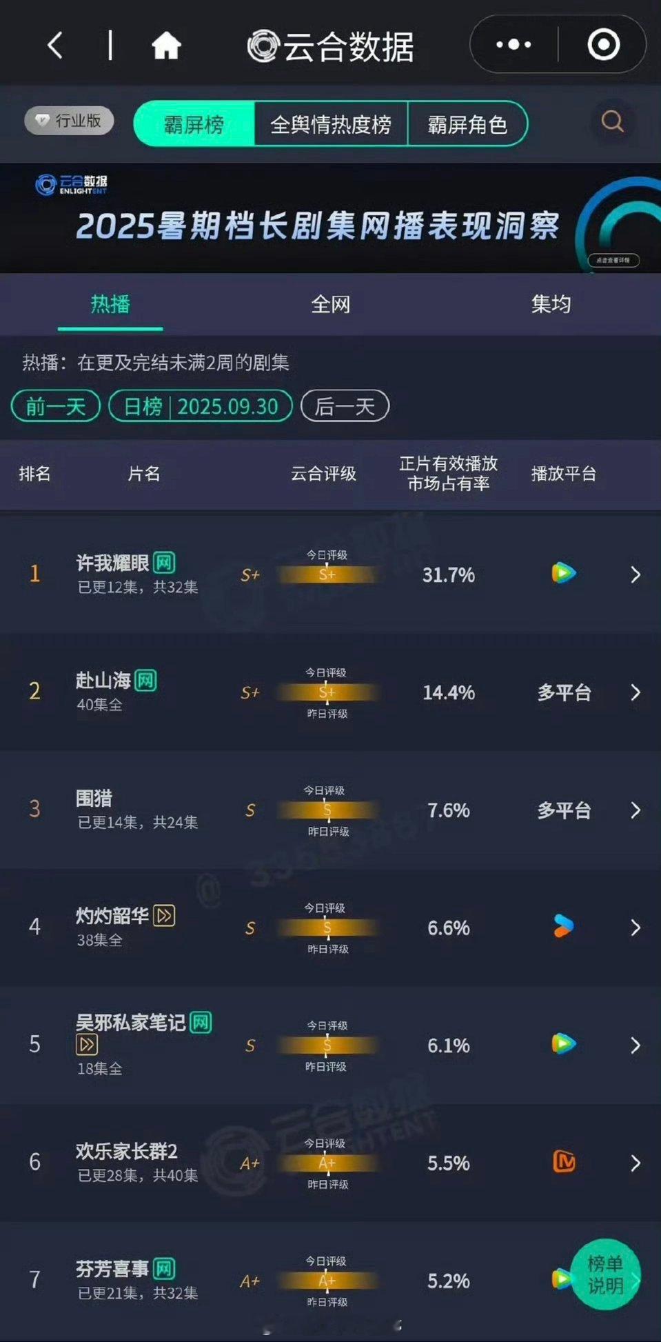 赵露思许我耀眼昨日云合31.7%,断层top1☝