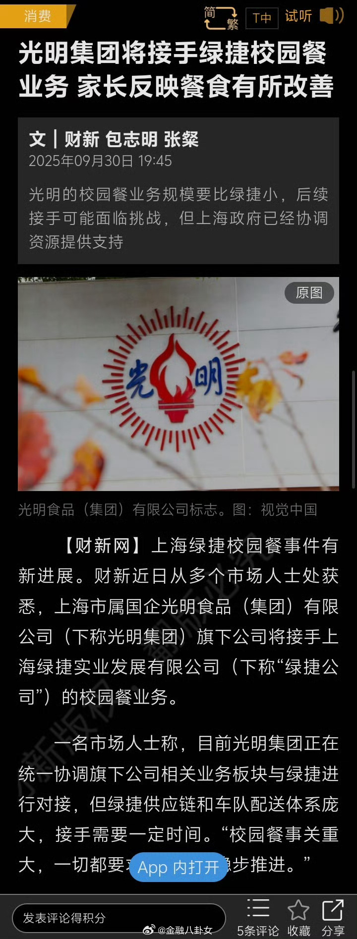 光明集团将接手绿捷校园餐业务光明集团将接手绿捷校园餐业务,家长反映餐食有所改善