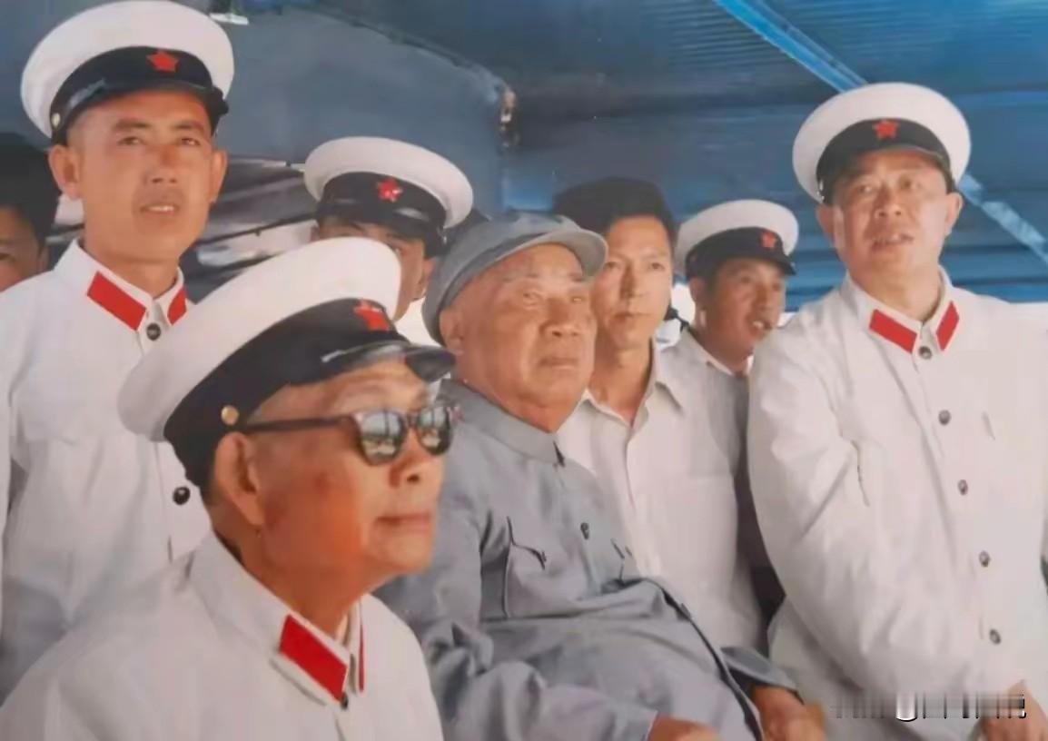 89岁的朱老总,在肖劲光大将的陪同下,视察海军,虽然一身戎装已卸,但是威风依旧不