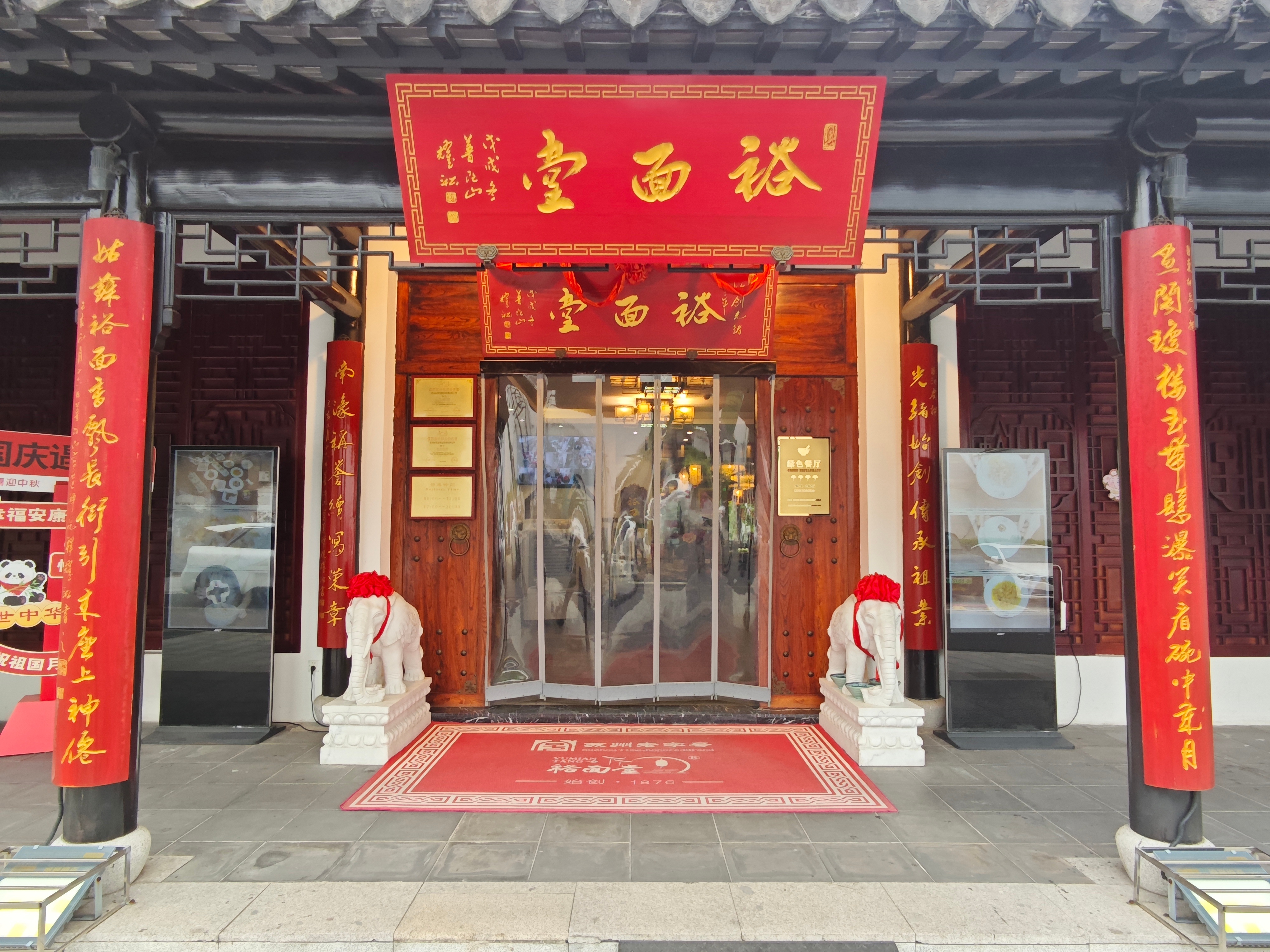 这家店名叫裕面堂,位于苏州市姑苏区南新路,央视一姐朱迅也来过,我和她吃的是同一碗面,她还说“心心念念的秃黄油面终于吃到了。”