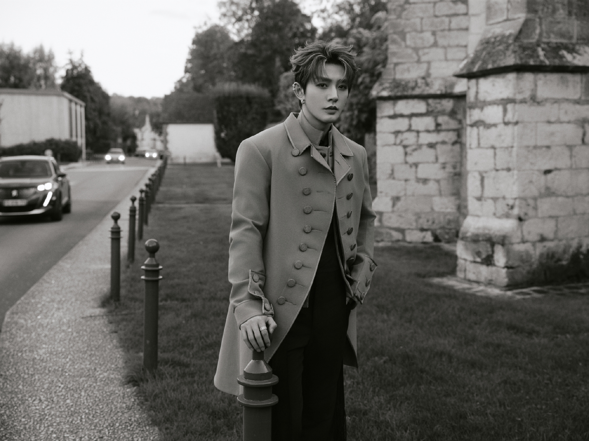 看秀造型公开!邓为身穿Jonathan Anderson 于今年六月发布2026春夏男装系列化身古堡王子,优雅剪裁勾勒挺拔身姿,耳环点缀增加个人魅力。今晚将一同见证迪奥二零二六春夏秀的发布,秀场见~