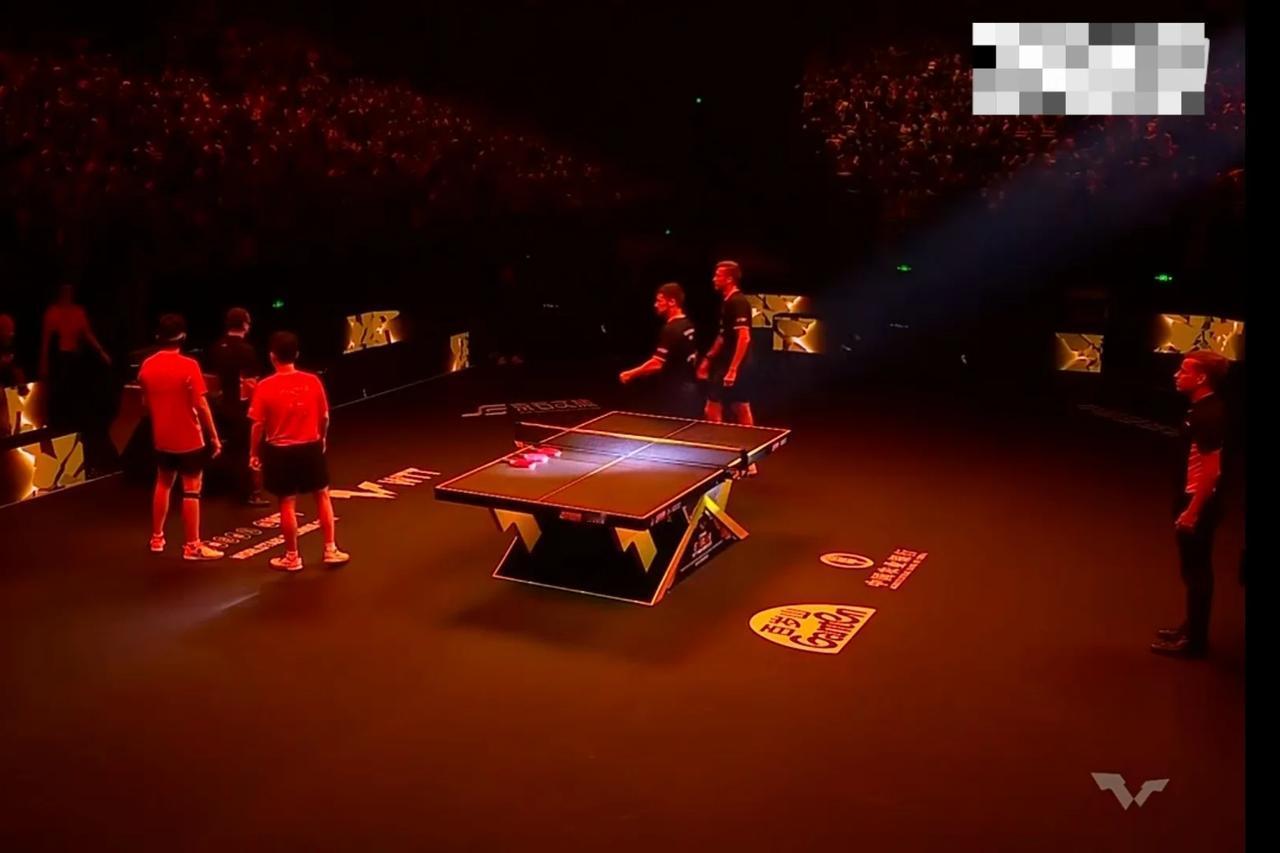 比赛刚要开始,一号场馆停电了,这次赛事办的。 今天晚上一号场馆的第一场比赛是王楚钦/林诗栋的男双比赛,他们刚到场地,准备要比赛时,场馆里停电了,虽然应急灯光有点暗,但是看到今晚那个副裁判还是中午的那个外国人,大家说今晚就要盯着那个裁判,看看他到底想干嘛。 后面灯好了,比赛开始,第一局王楚钦/林诗栋进入状态很快,以11-8拿下第一局,在比赛中卡尔松的发球因为回抛被裁判罚分,提出鹰眼挑战,挑战结果显示角度38.07°,发球违规,挑战失败。刚刚看到王曼昱和蒯曼的女双比赛已经结束了,她俩是3-0赢了港队,一号台是因为灯坏了延误比赛,不过看着打的也挺快的,第二局比赛听到一直在提醒观众席不要开闪光灯,第二局国乒是11-5拿下,大比分2-0领先。因为王楚钦还有一场混双的比赛,所以能快点结束比赛就快点,这样他也能节省点体力。 比赛来到第三局,王楚钦林诗栋比分5:2领先时,对面叫了暂停,今天看到林诗栋和王楚钦配合的不错,暂停回来,国乒是11-5拿下第三局,大比分3-0赢了比赛。王楚钦休息一会,还要练混双,一日三赛辛苦了。
