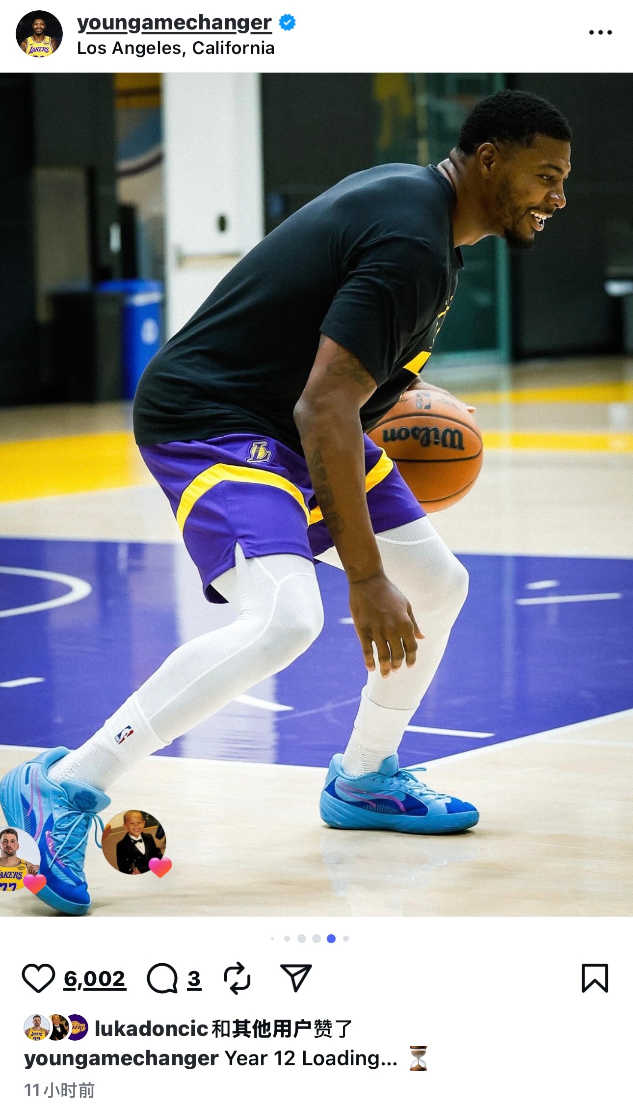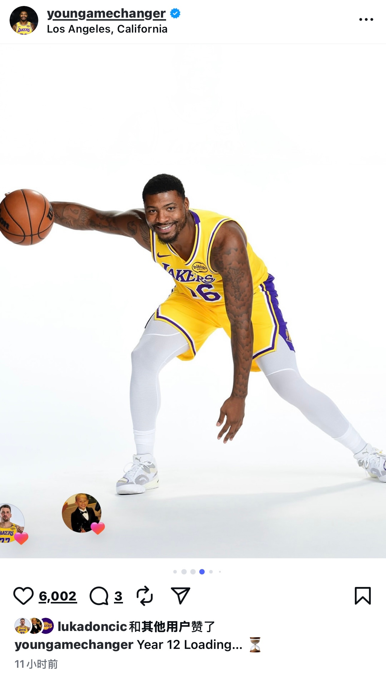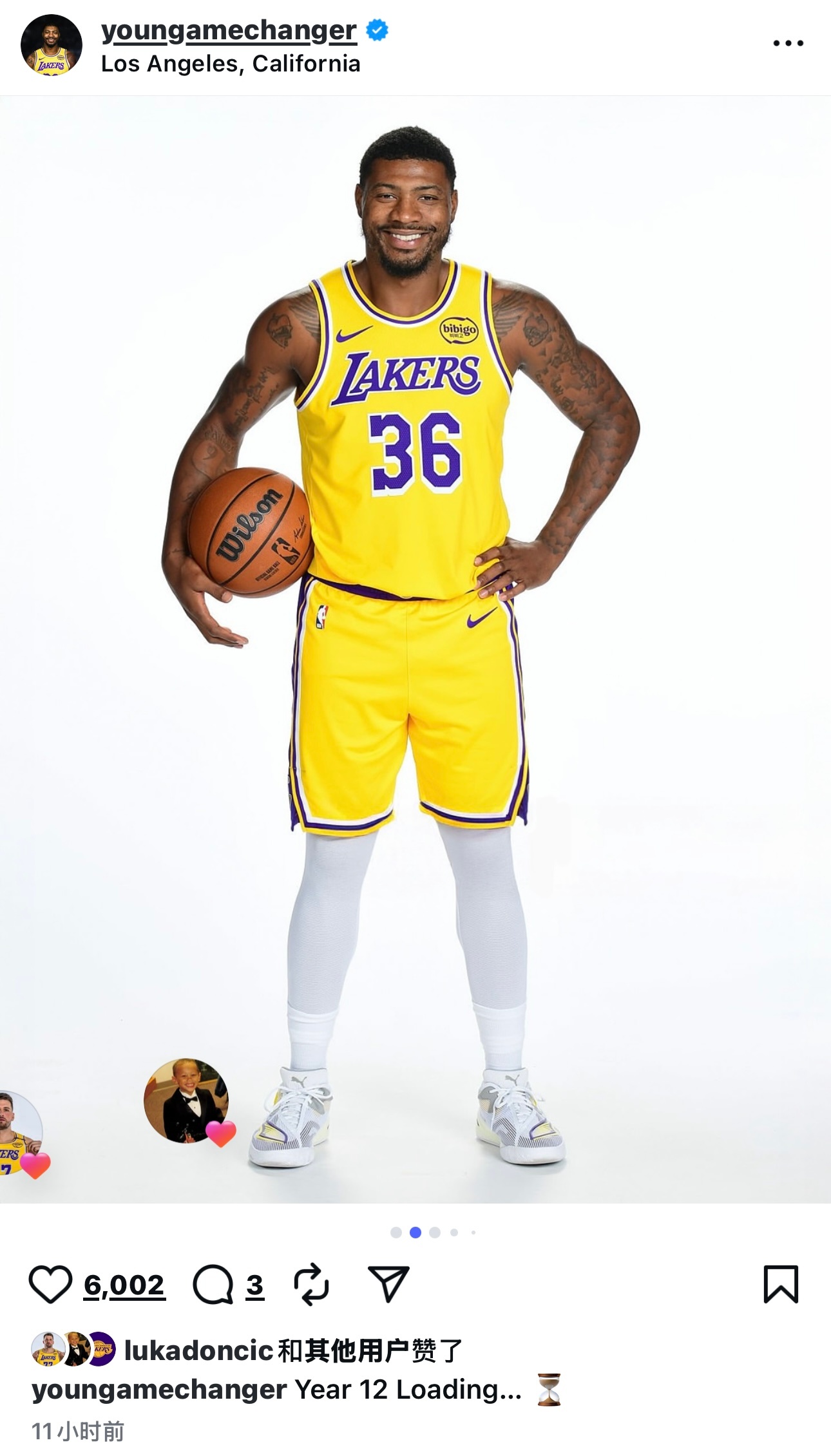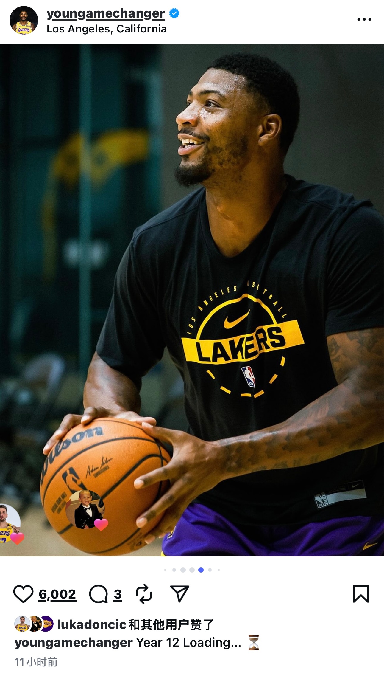 湖人后卫斯玛特更新社交媒体晒出媒体日和训练营照片,现队友东契奇、海斯、蒂耶罗,前队友杰伦布朗点赞👍
