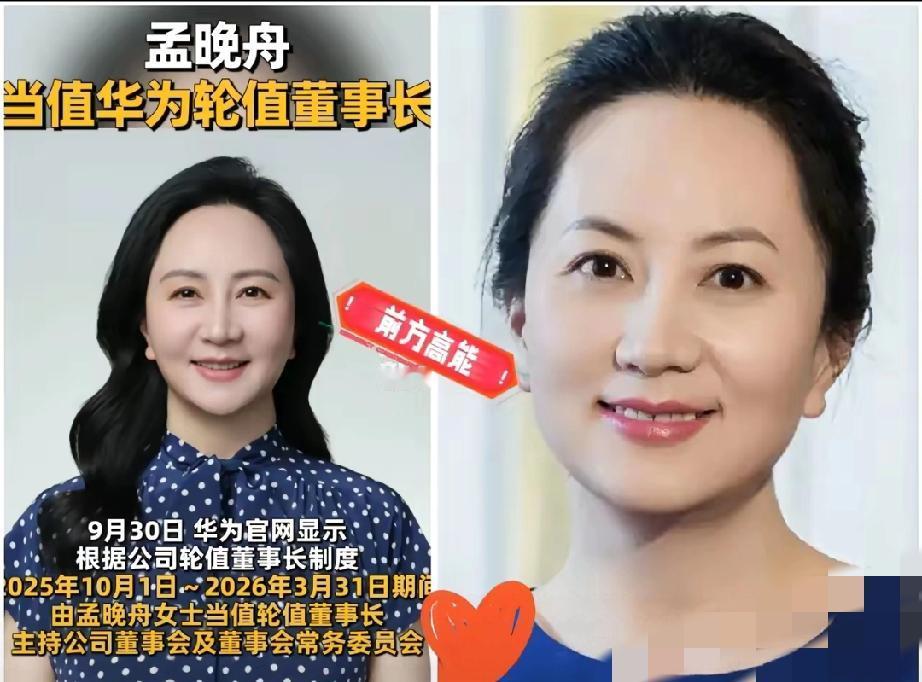快讯!快讯!华为突发消息,孟晚舟又要执掌帅印了! 从10月1日起,她将第三次当值轮值董事长,为期半年。但现在还盯着“任正非女儿”这个标签,真的太落伍了。她能在华为站稳脚跟,靠的全是硬实绩。 1993年就加入华为的她,从财务岗一步步做到核心管理层。推动IFS变革让精细化管理成了华为的基因,搞数据变革把数据变成战略资产,这些都是实实在在的贡献。华为的轮值制度本就凭能力说话,能三次当选,足以证明她的分量。 我觉得,比起“星二代”的身份,她“能扛事儿”的实力才更该被看见。真正的职场认可,从来不是靠标签,而是靠日复一日的实绩。 你觉得孟晚舟这次轮值,会给华为带来哪些新变化?来聊聊你的看法~