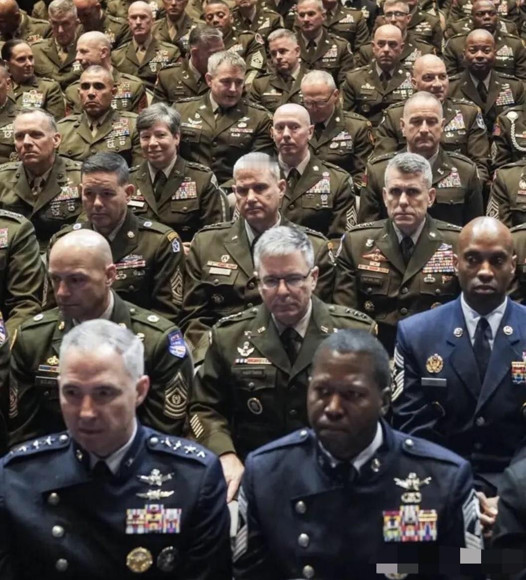 笑不活了!特朗普的这个演讲,台上唾沫横飞,台下面无表情, 不得不说,美国的这些将军们就是不一样,70分钟没人搭话,就留特朗普在演讲台唱独角戏,这画面想想都窒息…… 美军一贯以“远离政治”自诩,军队还有着无党派的传统, 其实他们被召来开会,将军们这次之所以如此严肃,那是因为这次特朗普和赫格塞思定的演讲基调,给这些将军们带来了极大的心理压迫和危机感! 特朗普任曾多次公开批评军方领导层,甚至用“软弱无能”这样的词来形容参谋长联席会议。此次演讲中为了缓和紧张气氛,特朗普还故意说:“不愿意听可以走,但是后果要自负哦”,将军们这才笑了起来,但是很快赫格塞思发出的“最后通牒”,把这群高级将领们又拉回了冰冷的现实。 “要么听话,要么辞职,” “不认同我观点的人,你们可以离开。” 都不用听赫格塞思继续说别的,就这两句话,事关自己的军事生涯和前途,在场的将军们别说笑了,恐怕能够镇定自若的就很少,面对顶头上司如此直白的“最后通牒”,将军们紧绷的坐姿透露着内心的震动。 关联一下美国联邦政府“停摆”的新闻, 或许就能理解特朗普和赫格塞思所思所想,许多迹象表明,美国正面临着严峻的内部挑战和相对实力下滑的趋势。 其他的美国政府机构很多已经被裁撤了,大量的资金投入到了军队。 但是面对军队中存在的一些管理和效能问题,换做谁站在台上恐怕都会感到压力巨大。” 再穷不能穷教育,再减也不能减军费, 如今美国军队的现状让特朗普都不能淡定,他表示:“美国正遭遇“内部入侵”,对军方高层发出如此直接的“告白”,在美国近年军政关系中实属罕见,其实说到底,还是美国衰落下的一种直观体现而已!