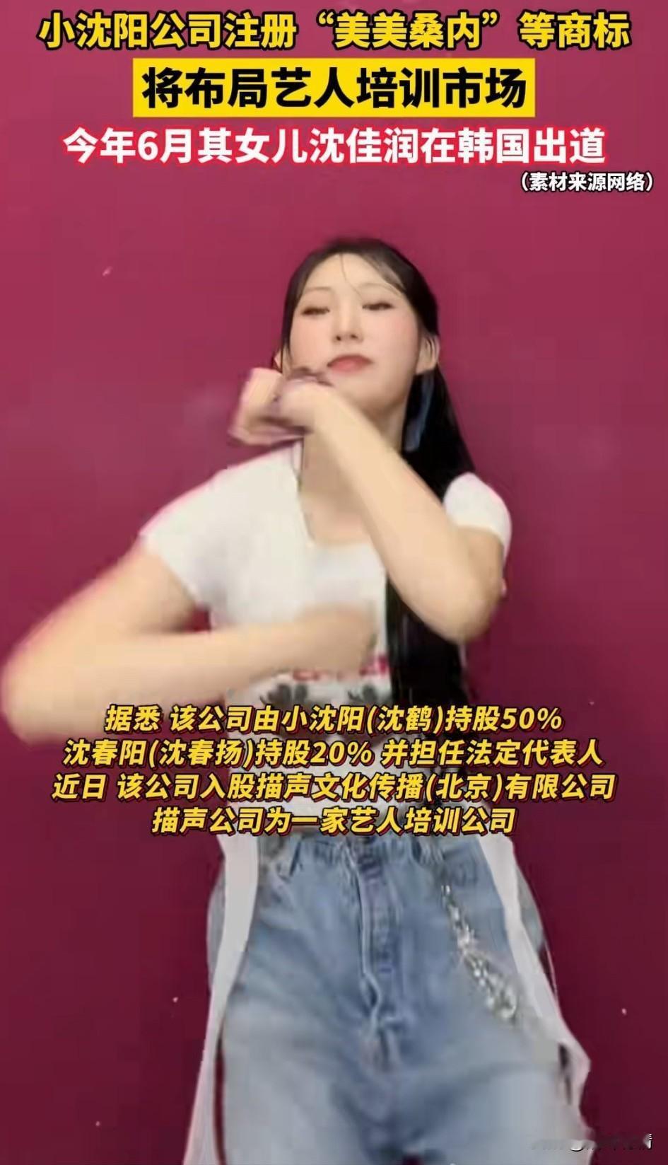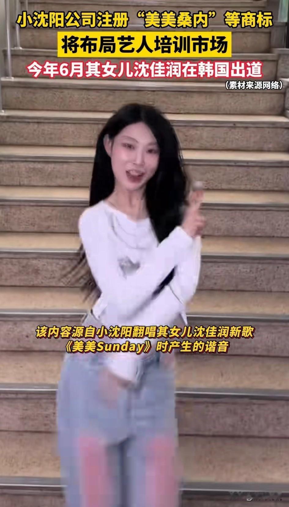 沈阳首富公司开始注册美美桑内商标了,看来小沈阳要开始全力托举女儿了,今年6月她的女儿沈佳润在韩国出道,正式踏入演艺圈, 不过她女儿在韩国根本吃不开, 专辑销量才几十张, 没办法只能出口转内销, 如今小沈阳公司亲自下场, 注册非常多美美桑内相关歌词商标, 果然是自己不尴尬尴尬的就是别人, 小沈阳和她的妻子开始布局艺人培训市场,将来应该有不少他们培养的艺人在韩国出道吧! 大家觉得小沈阳的艺人培训公司能培养出大明星吗? 沈佳润 小沈阳 沈佳润热舞 沈佳润变美 沈春阳女儿