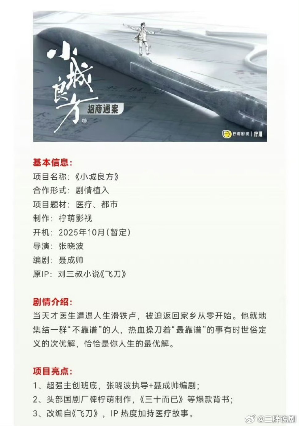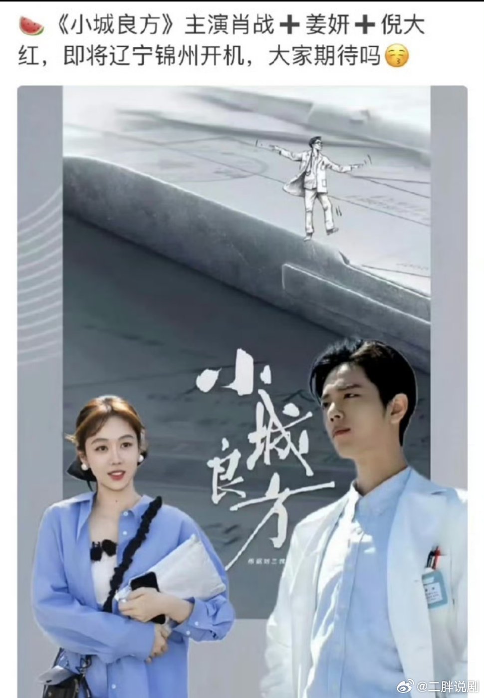 【二胖发布】柠萌影视出品,张晓波导演,肖战、姜妍主演的都市医疗剧《小城良方 》将于10月10日在辽宁锦州开机,敬请期待!