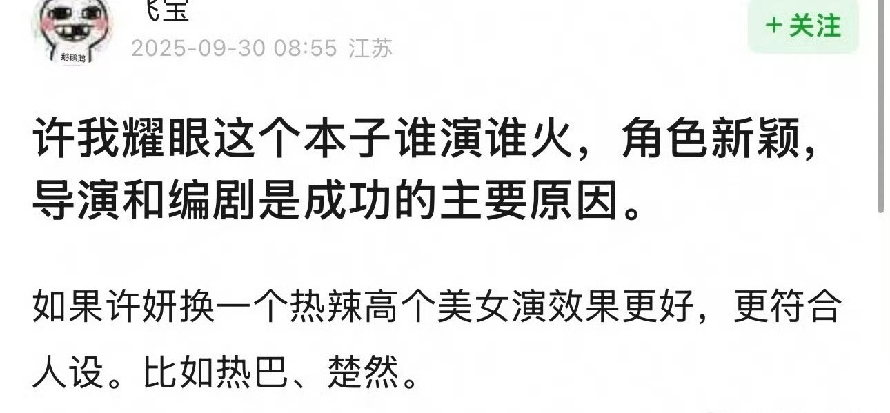 有网友说许我耀眼这个本子谁演谁火,角色新颖,导演和编剧是成功的主要原因。