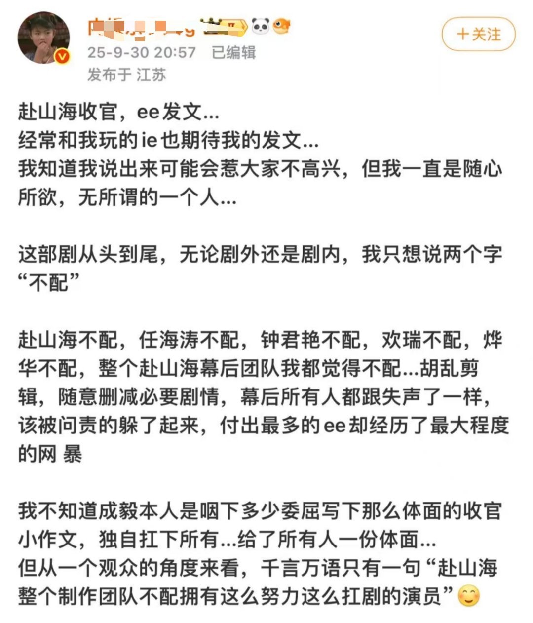 就连一直很支持的yxh都开始吐槽赴山海了………真的是扑的亲痛仇快[允悲]