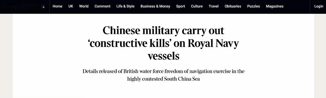 英媒:中国战机模拟击沉里士满号护卫舰——英国泰晤士报报道。这次是模拟,下次整不好就是实战了7,现在很多人都在好奇哪个国家是幸运儿,先尝到中国复兴以后的怒火,其实个人感觉英国就不错,五常之一,军事实力拉胯,没事还总爱挑衅中国,而且还敢派军舰来中国近海,这简直就是送给中国,现在是中国一直在克制,可是克制都是有限度的,哪天不想控制了,那么后果英国肯定是承担不了的。