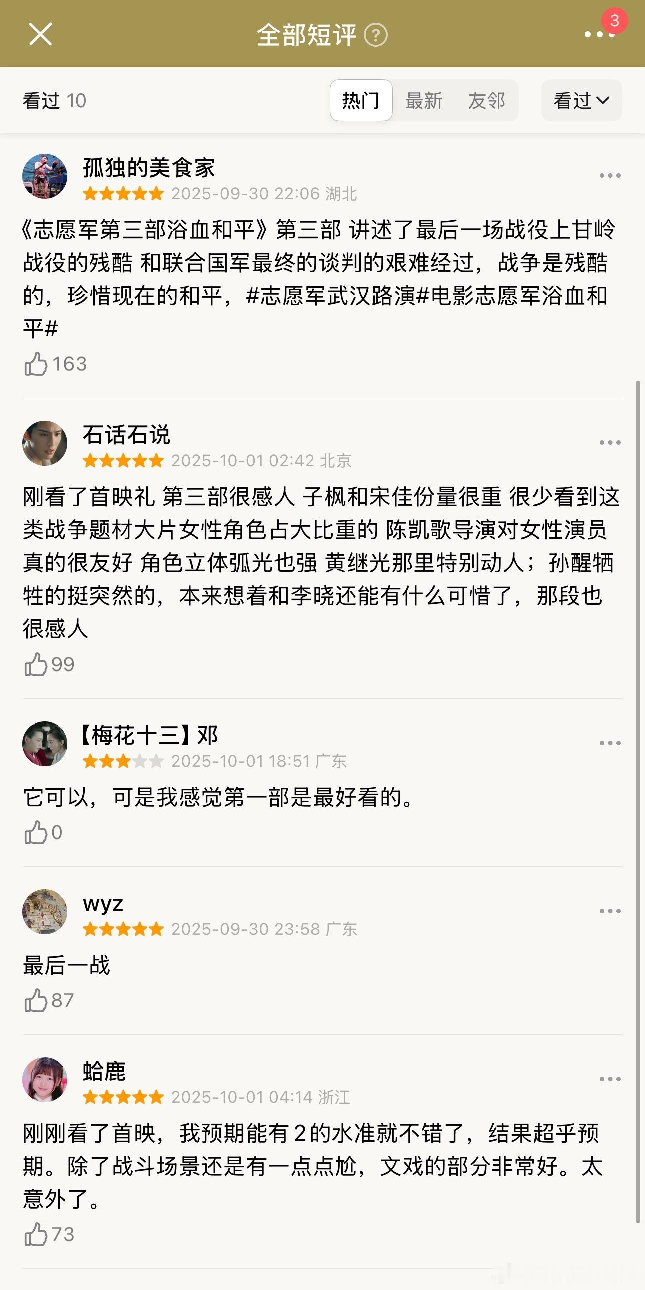 国庆档第一天目前票房排名第一的《志愿军:浴血和平》,刚刚截图这一刻在豆瓣上只显示了5条评论